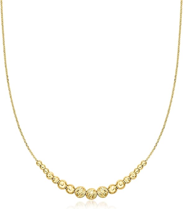 Ross-Simons Italian 3-6mm 18kt Gold Over Sterling Bead Station Necklace
