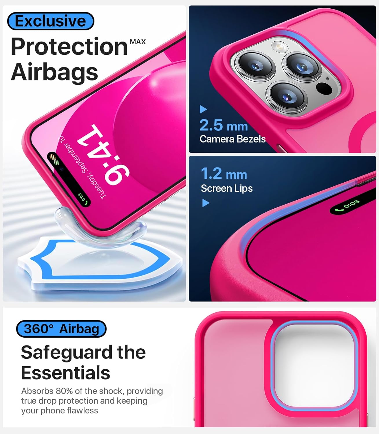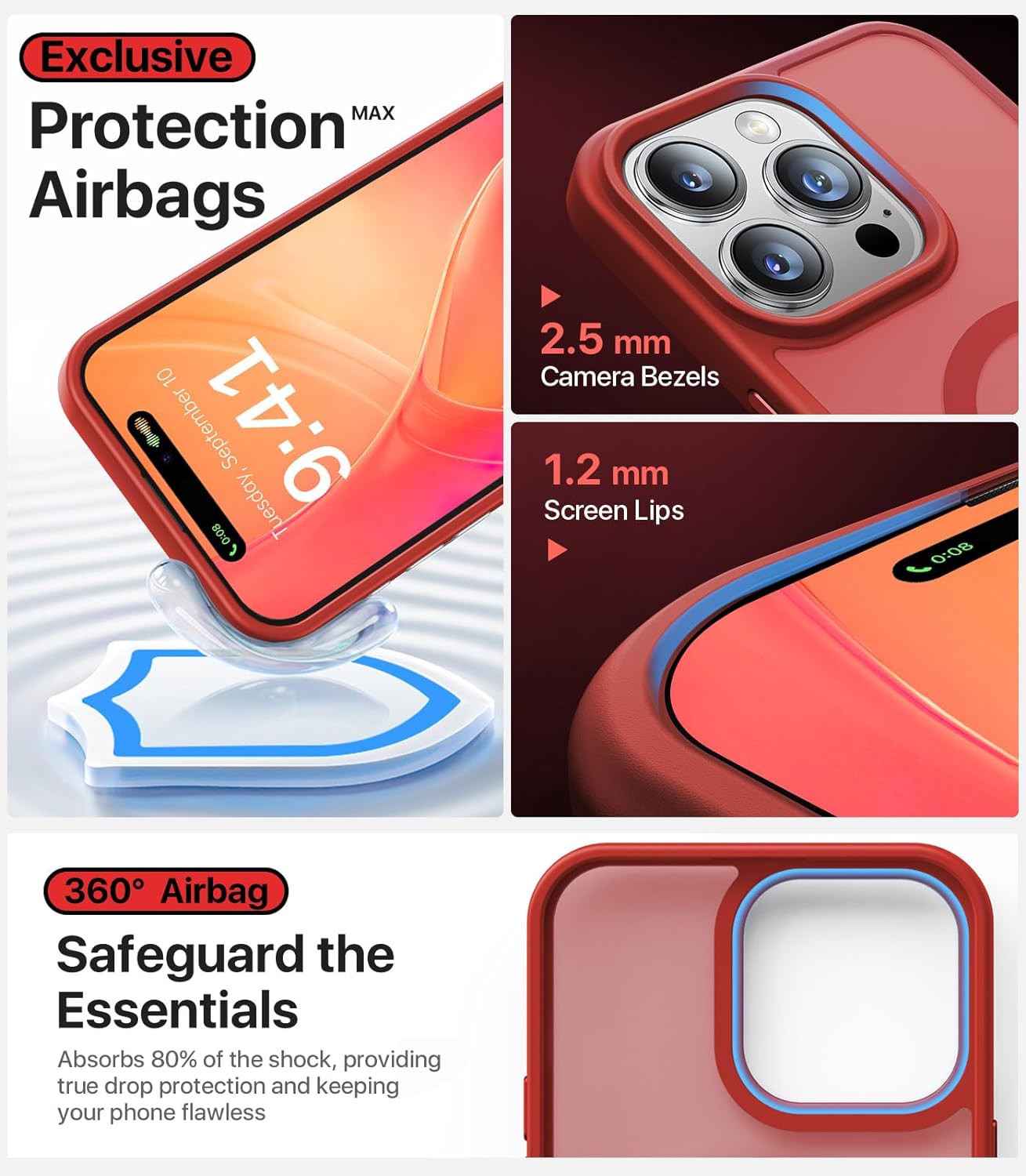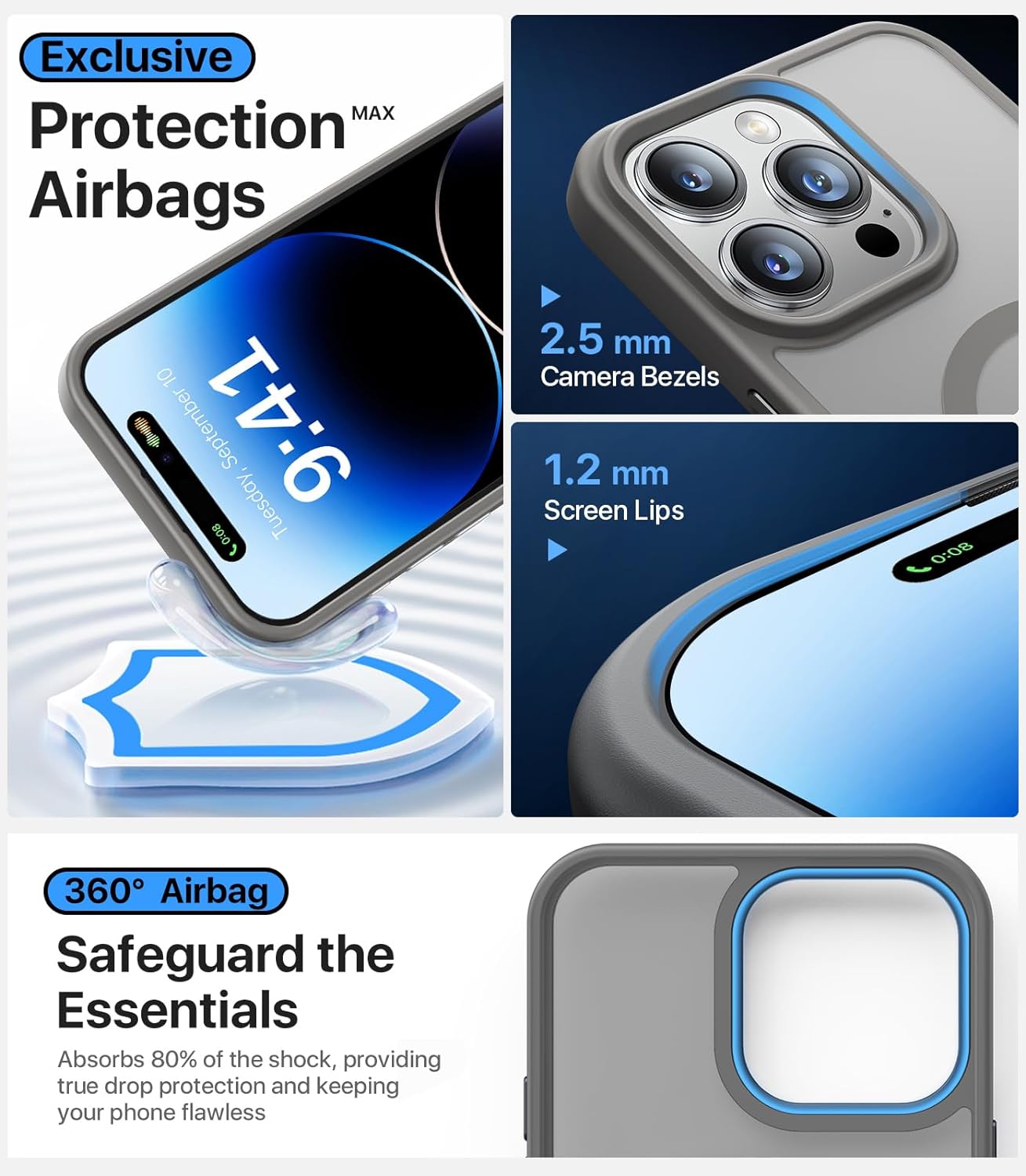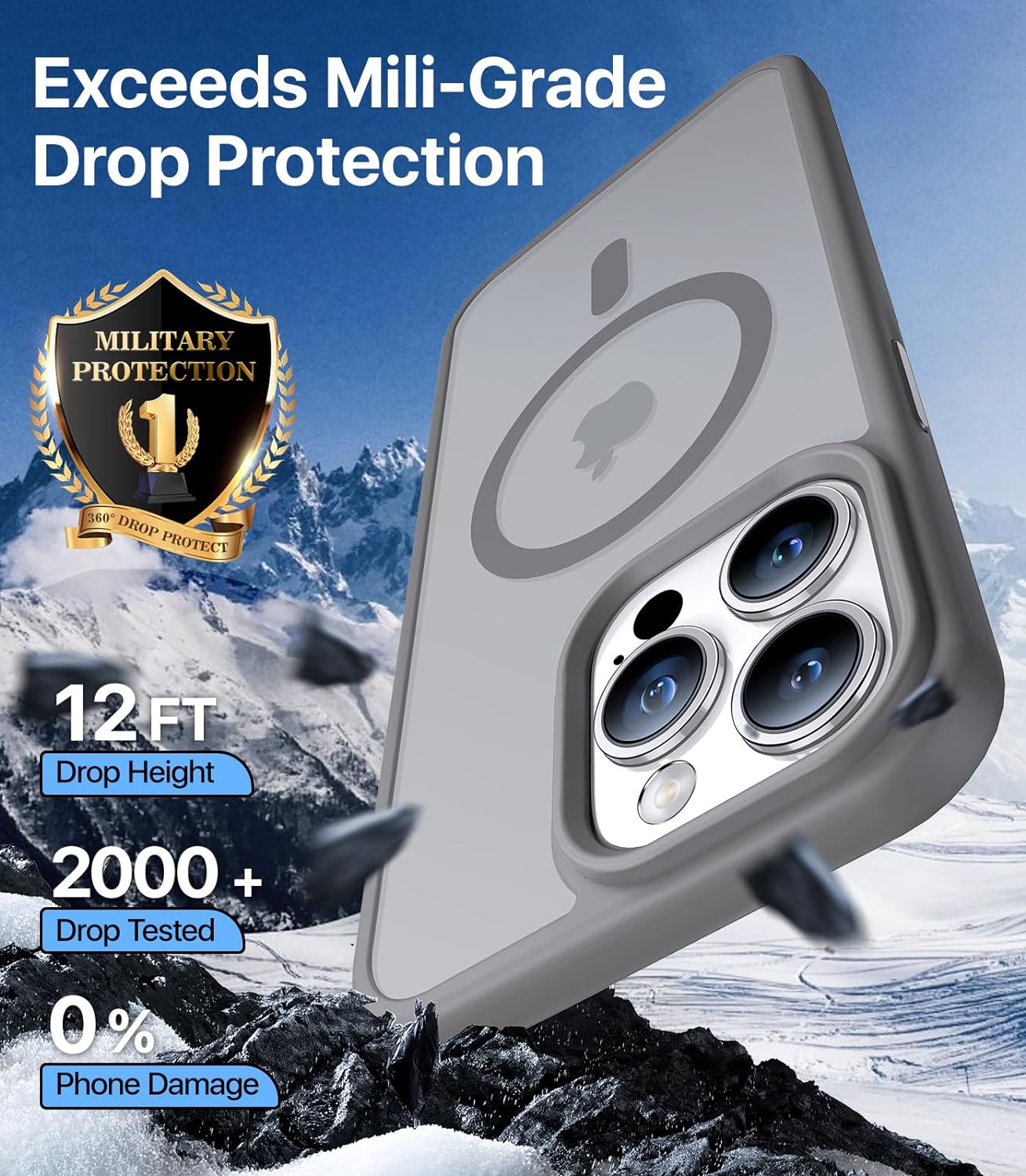 • [Trusted Military-Grade Protection] Say NO to expensive $1000 repair bills! This iPhone 15 Pro Max protective case was tested over 2000+ times,10FT drop test, and 0% damage! This case design with tough blast-proof hard back panel, a flexible TPU bumper of 4-ply cushioning structure, and 360° shock-absorbing airbags, which can effectively disperse the violent impact when the iPhone falls and collides.You can always trust this case to keep your iPhone safe and sound.