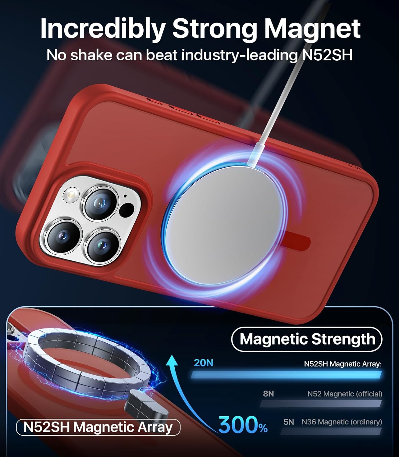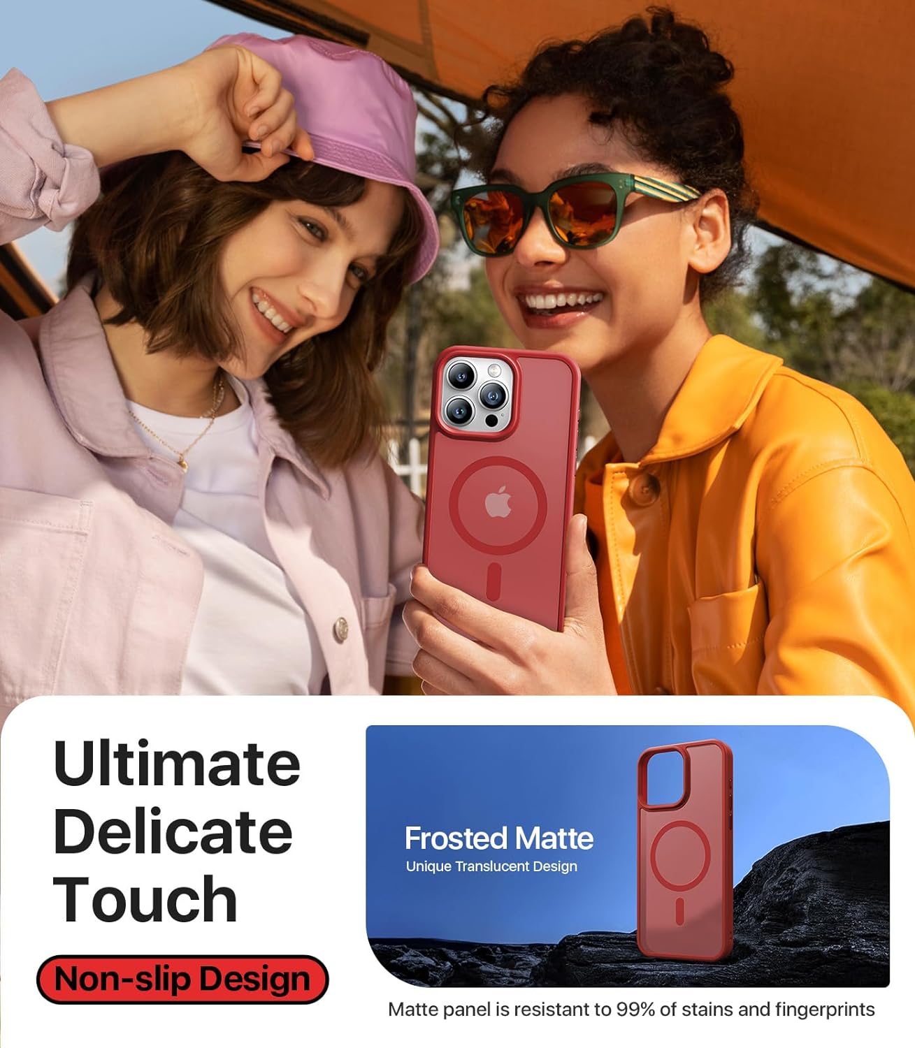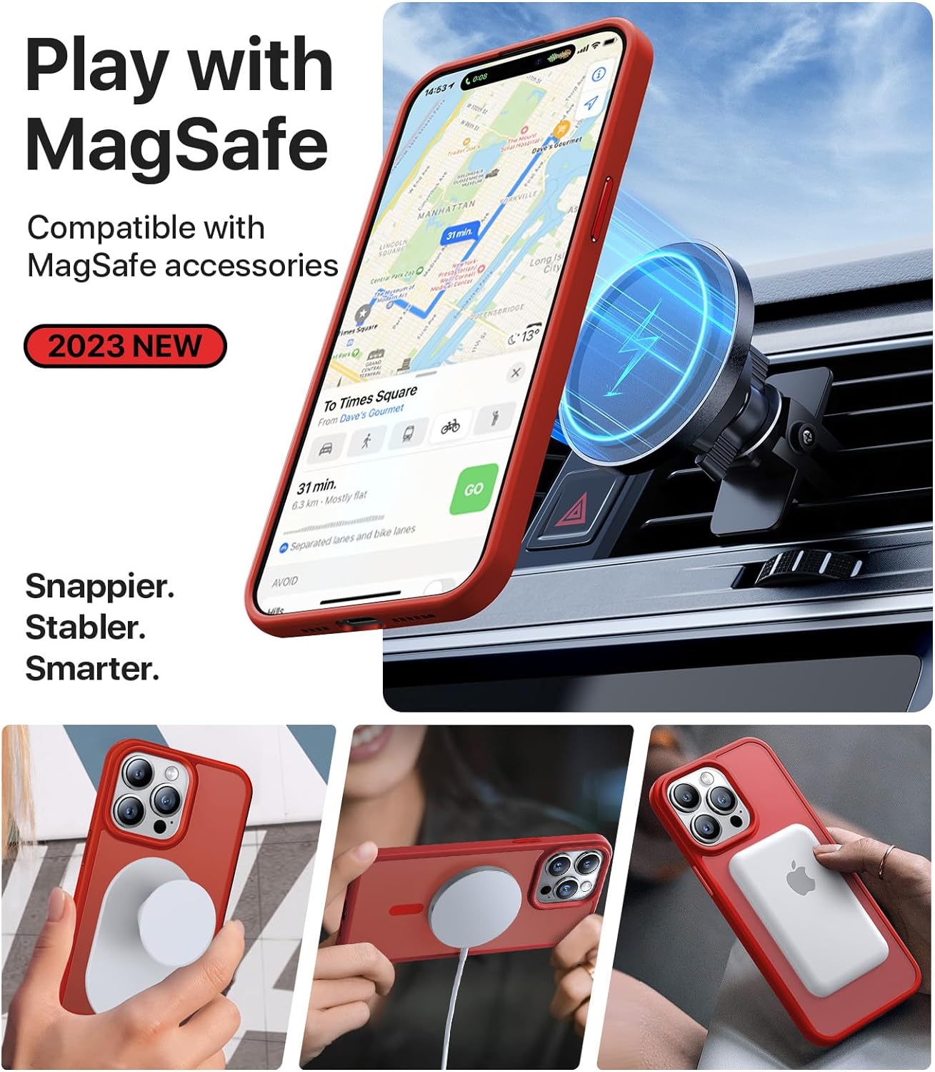 Aulofe Strong Magnetic for iPhone 15 Pro Max Case, [Compatible with MagSafe] [Military-Grade Drop Tested] Shockproof Protective Slim Translucent Matte Cover for iPhone 15 Pro Max iPhone Case, Red