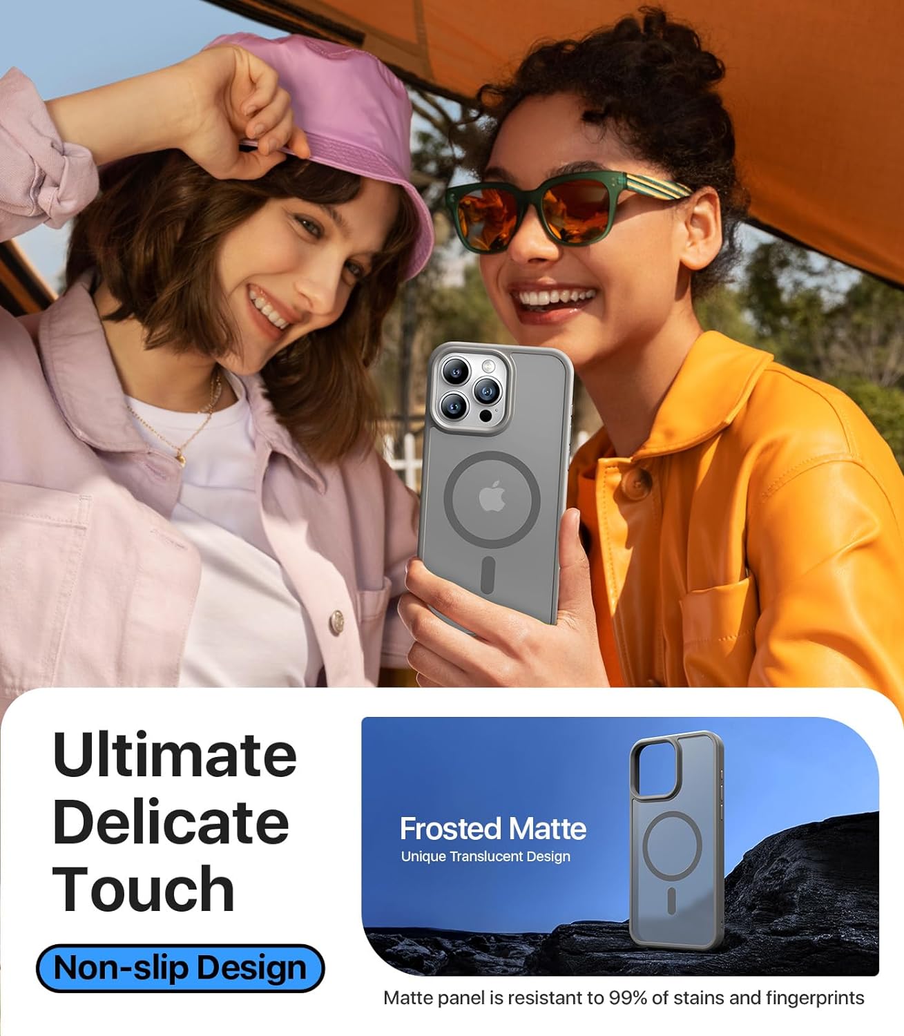 • [Premium Touch Feel] Sleek, Stylish, Smooth, love at first touch! The edge of Phone case iPhone 15 Pro Max is made of soft silicone for a delicate and comfortable grip experience. The translucent matte back panel uses an upgraded curing nano-oleophobic coating process to provide you with a silky touch every time. It is resistant to all smudges and scratches and fully shows the brilliant colors of your new iPhone.