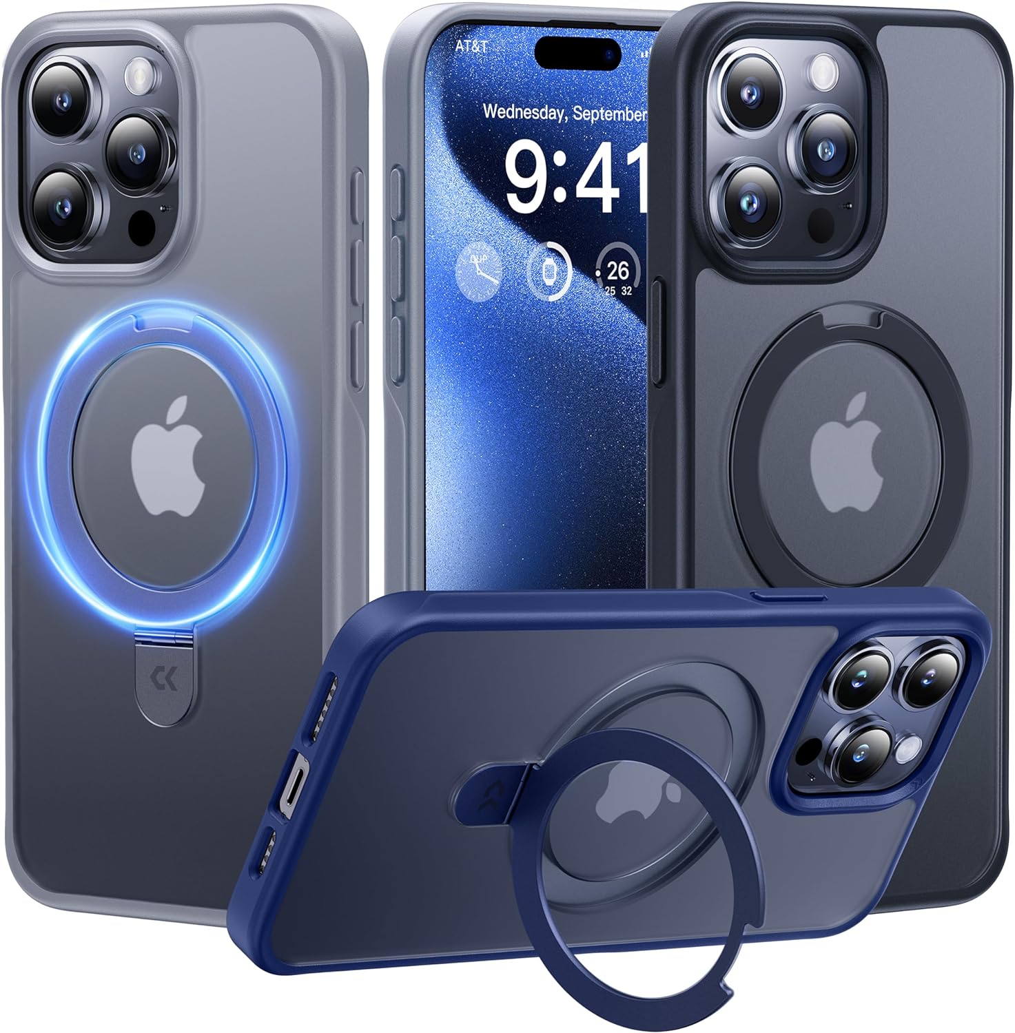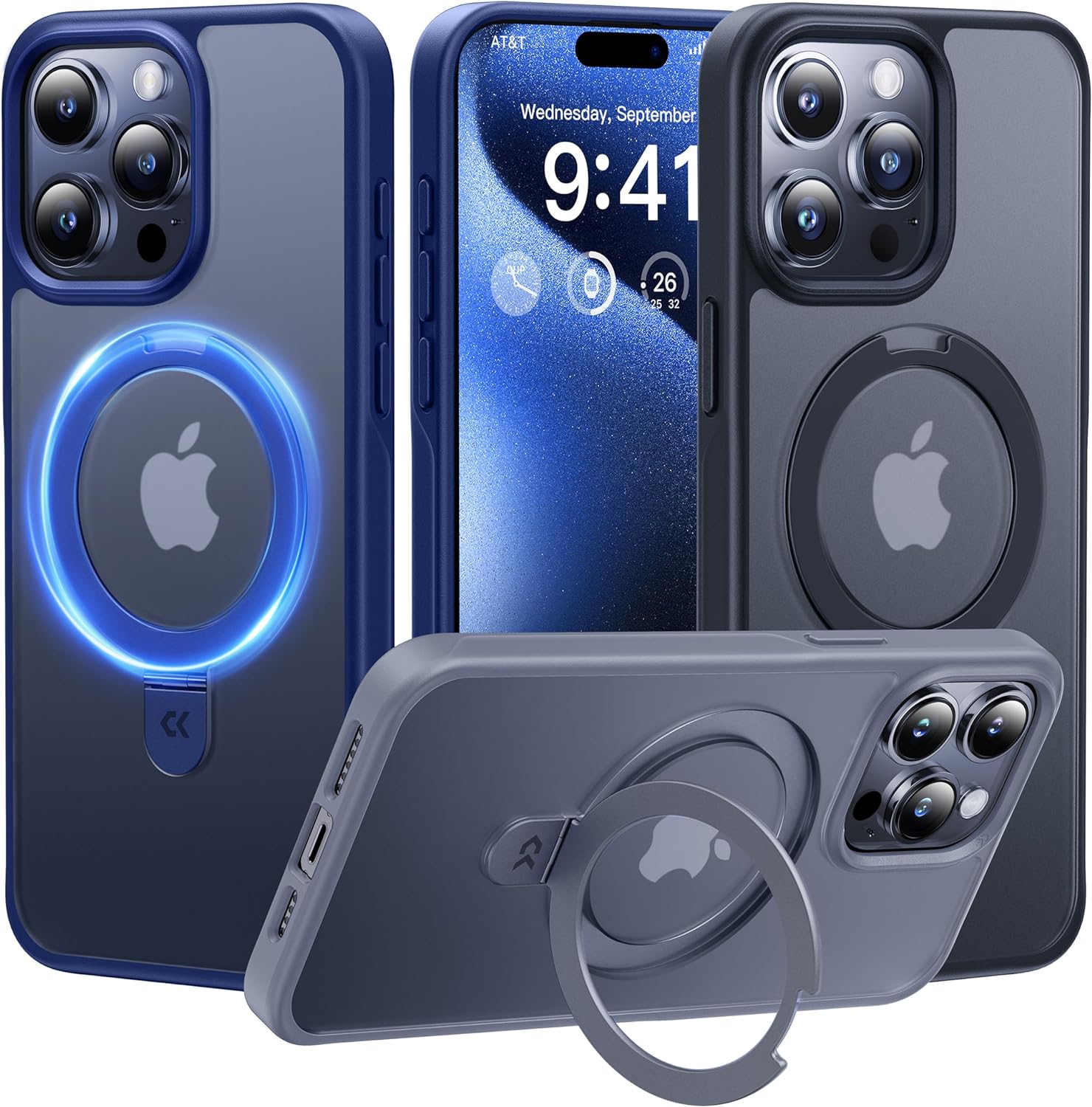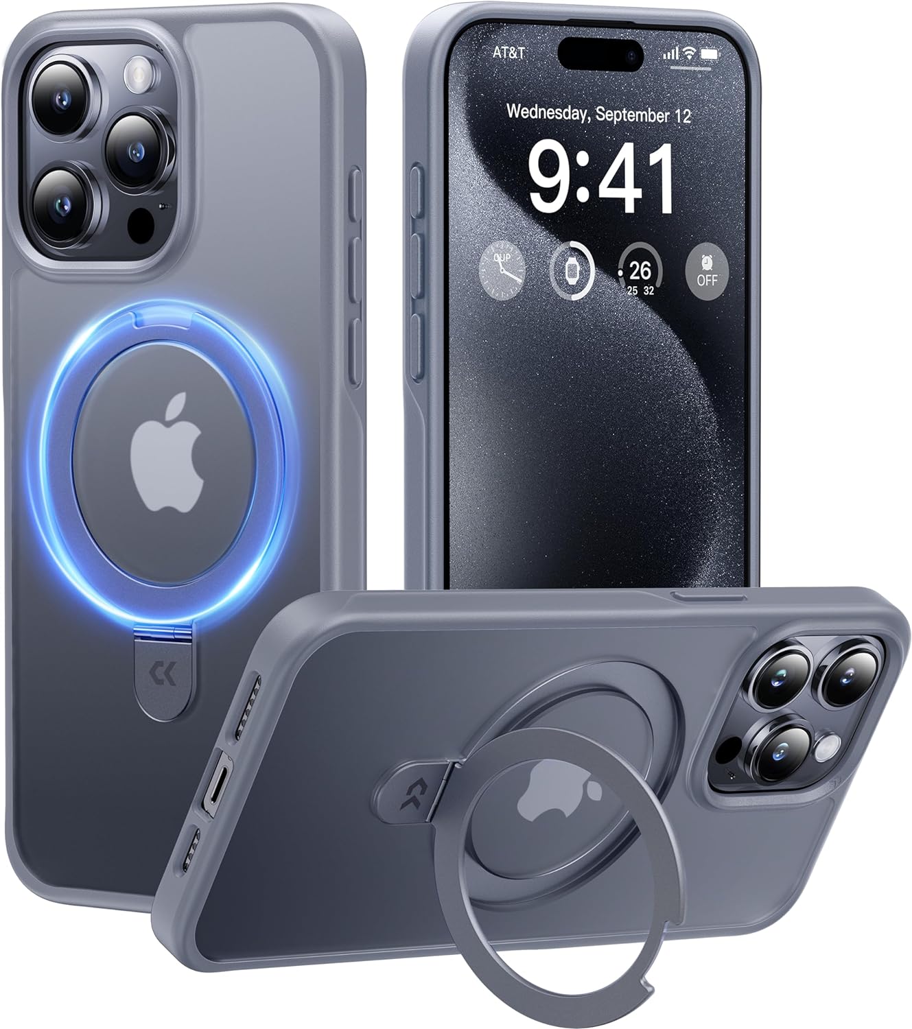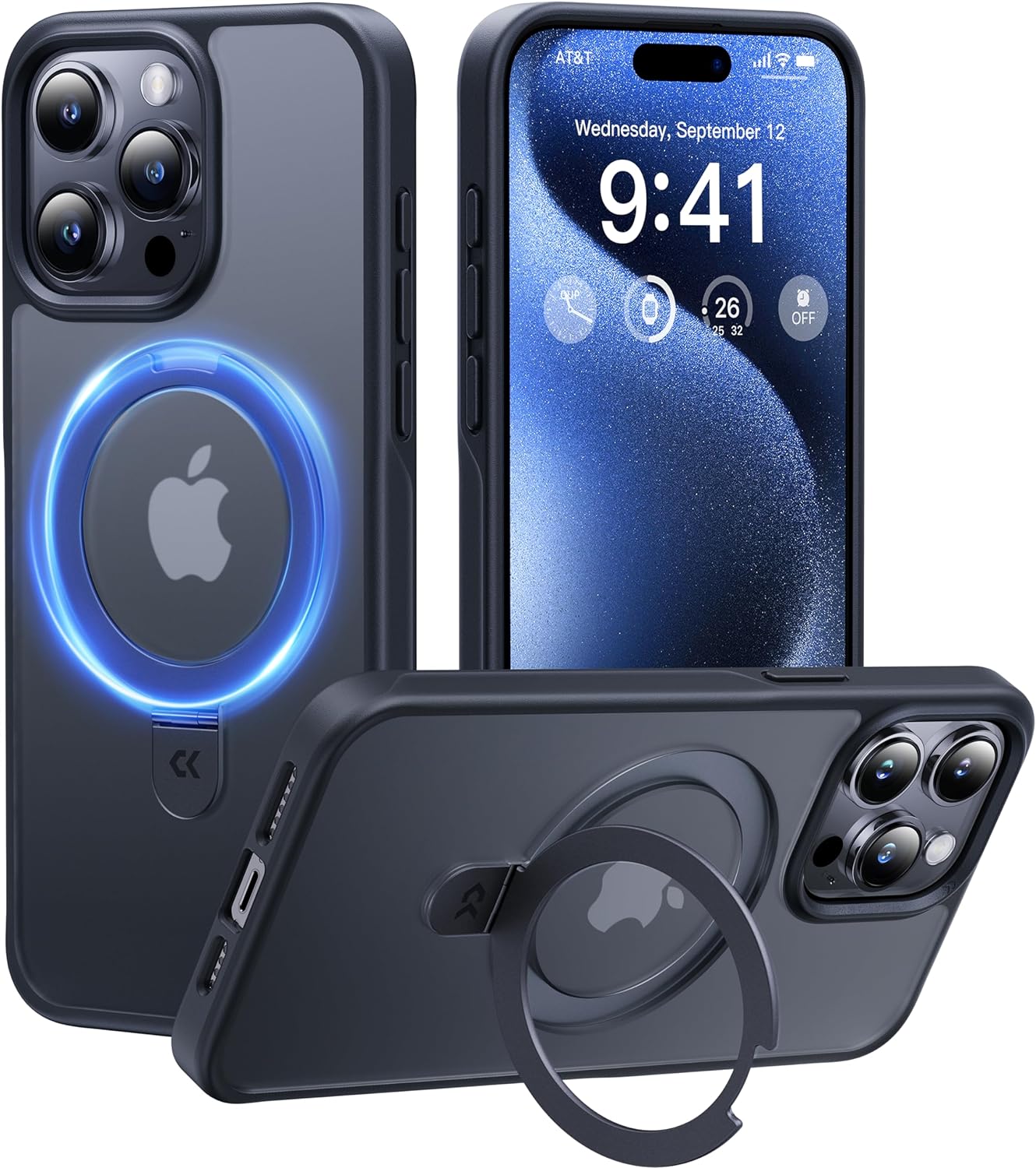 • 【Hands-Free, Hassle-Free】CASEKOO designed for iPhone 15 Pro Max case incorporates an innovative invisible stand design with an exclusive appearance patented. Constructed with the LIGHTWEIGHT YET DURABLE aerospace aluminum alloy, the circular kickstand brings the portability of the phone case to a new level. In addition, it can be placed in portrait or landscape mode stably. You can adjust it between 40°~120° as your wish. Enjoy every watching moment.