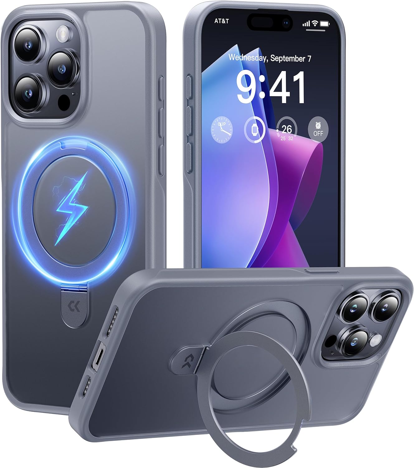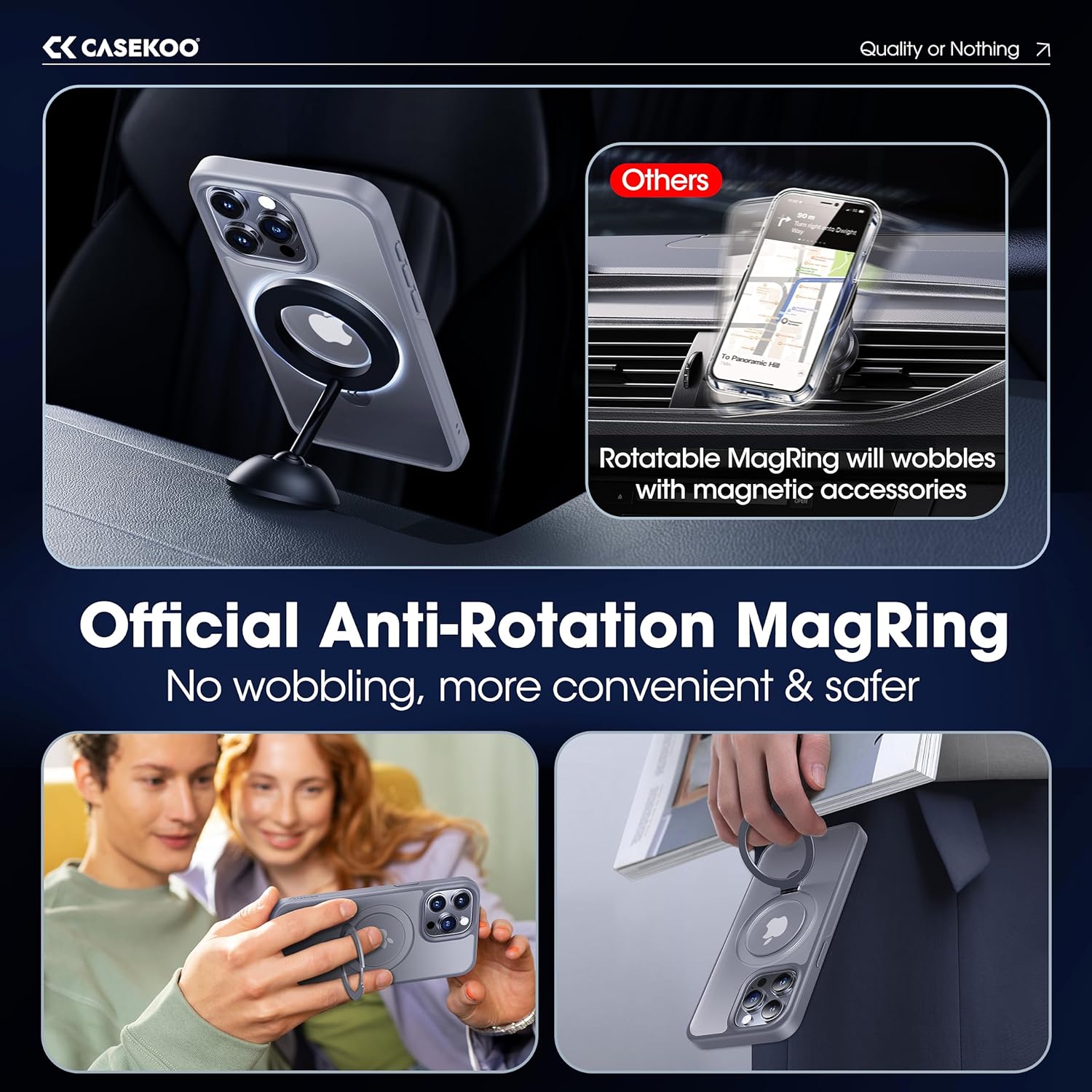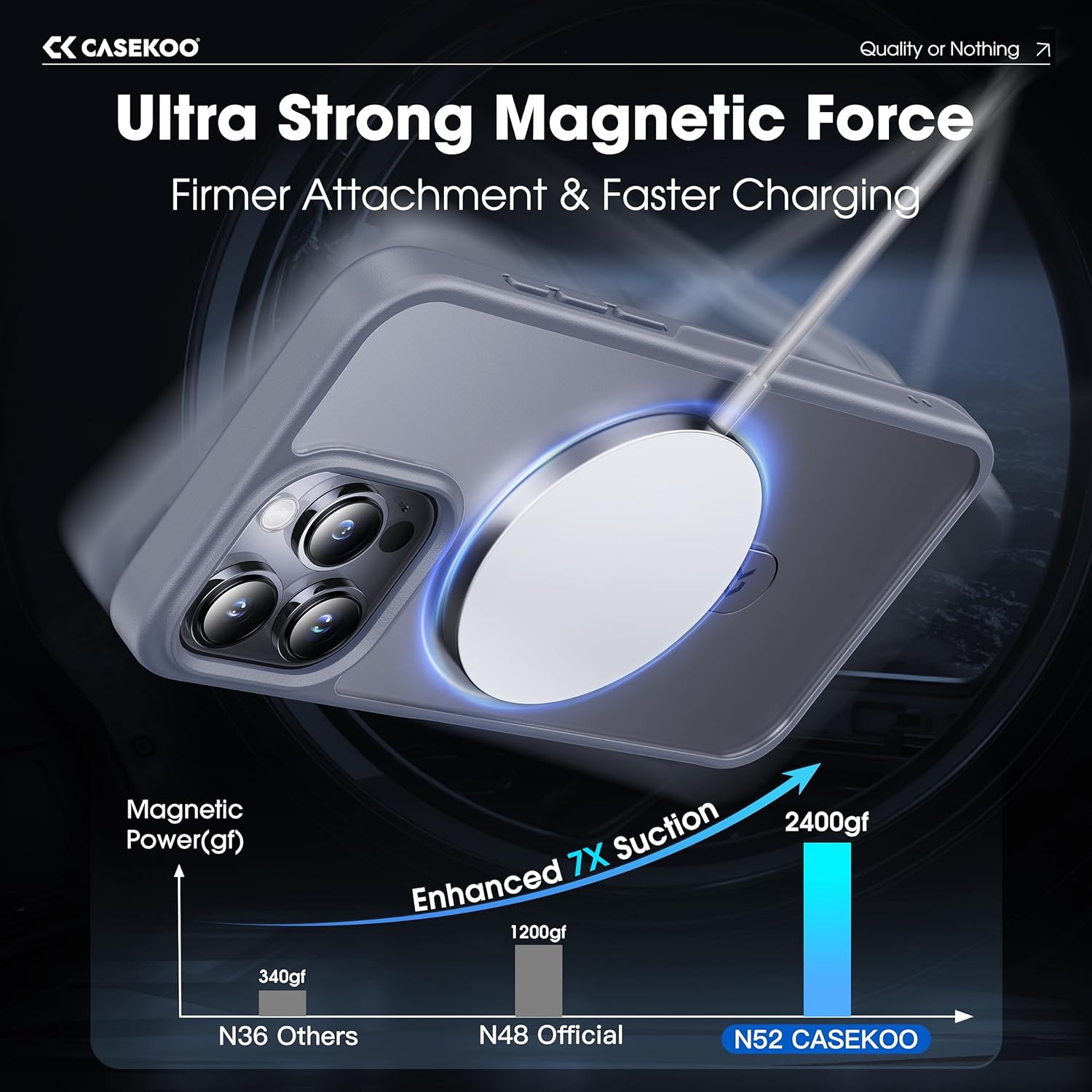 • 【Magnetic Magic】The MagicStand Case is compatible with all MagSafe accessories and third-party Qi-certified wireless chargers. It provides a built-in 48pcs magnets ring structure, explicitly arranged with CASEKOO's MagPrime array technology, allowing for 2 TIMES STRONGER magnetism than the Official's. MagPrime ensures almost 0% POWER LOSS during wireless charging, making charging FASTER YET SAFER. It shortens overall charging time and further improves your wireless charging experience.