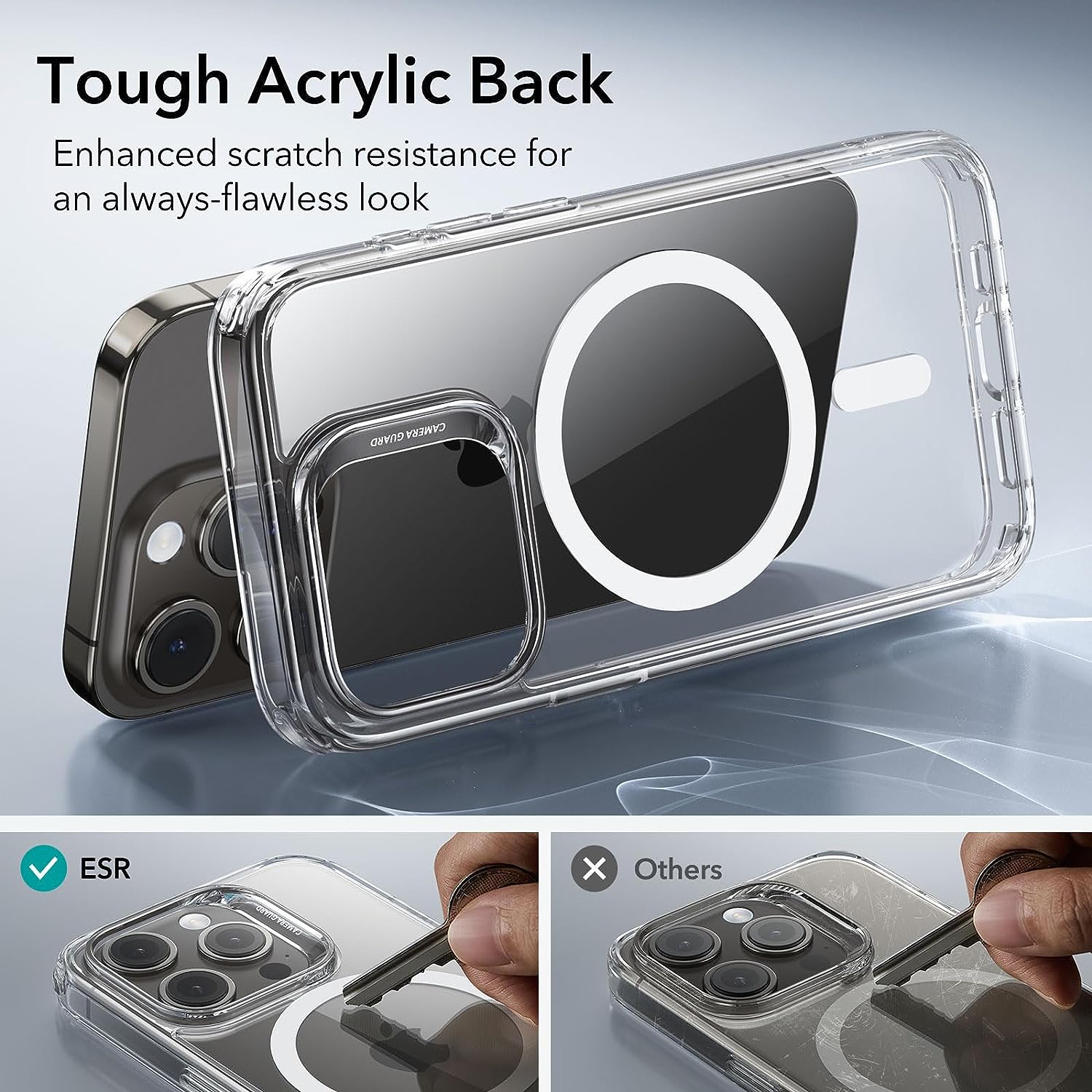 • Stay Original: scratch-resistant, crystal-clear acrylic back lets you show off your iPhone 15 Pro’s true style in stunning clarity that lasts