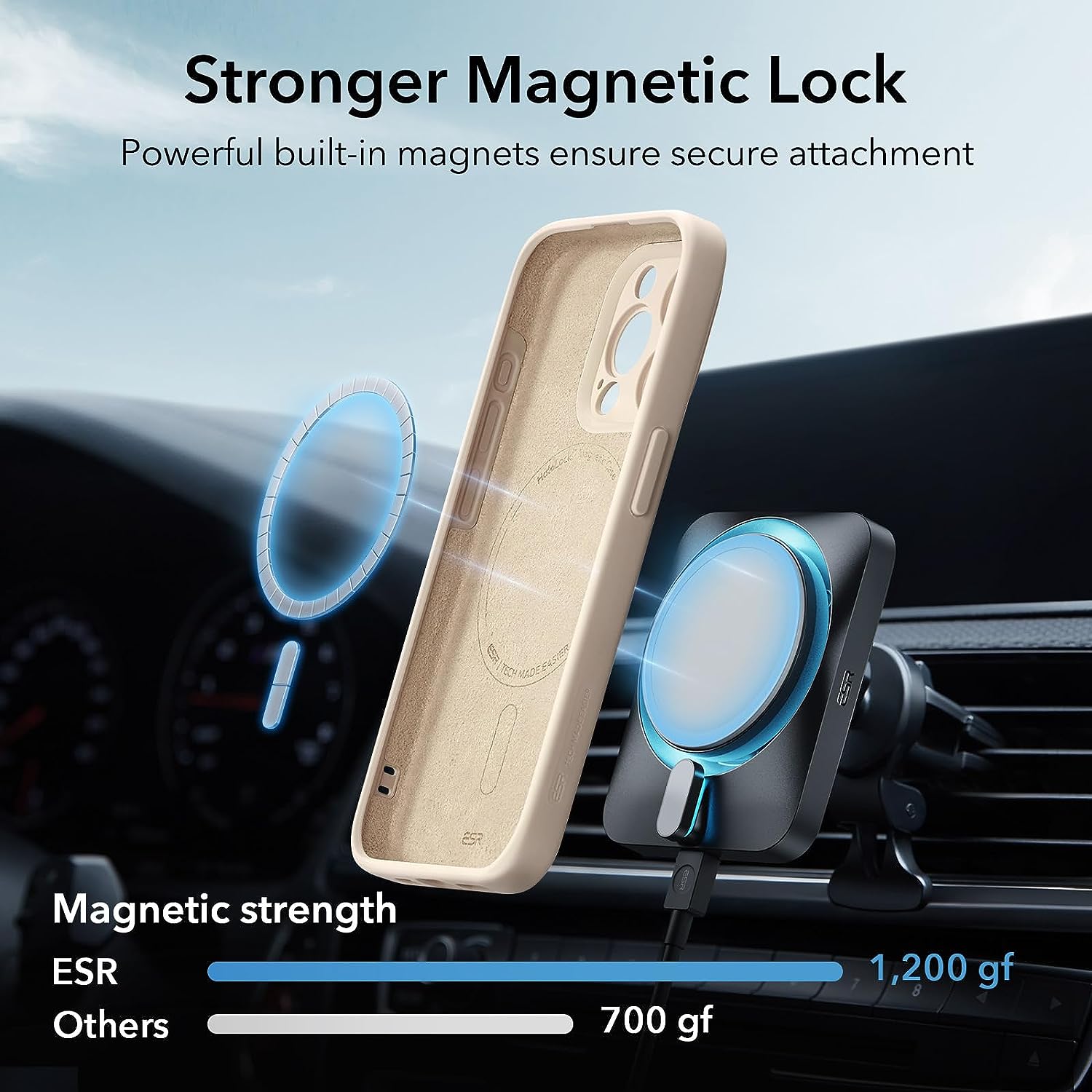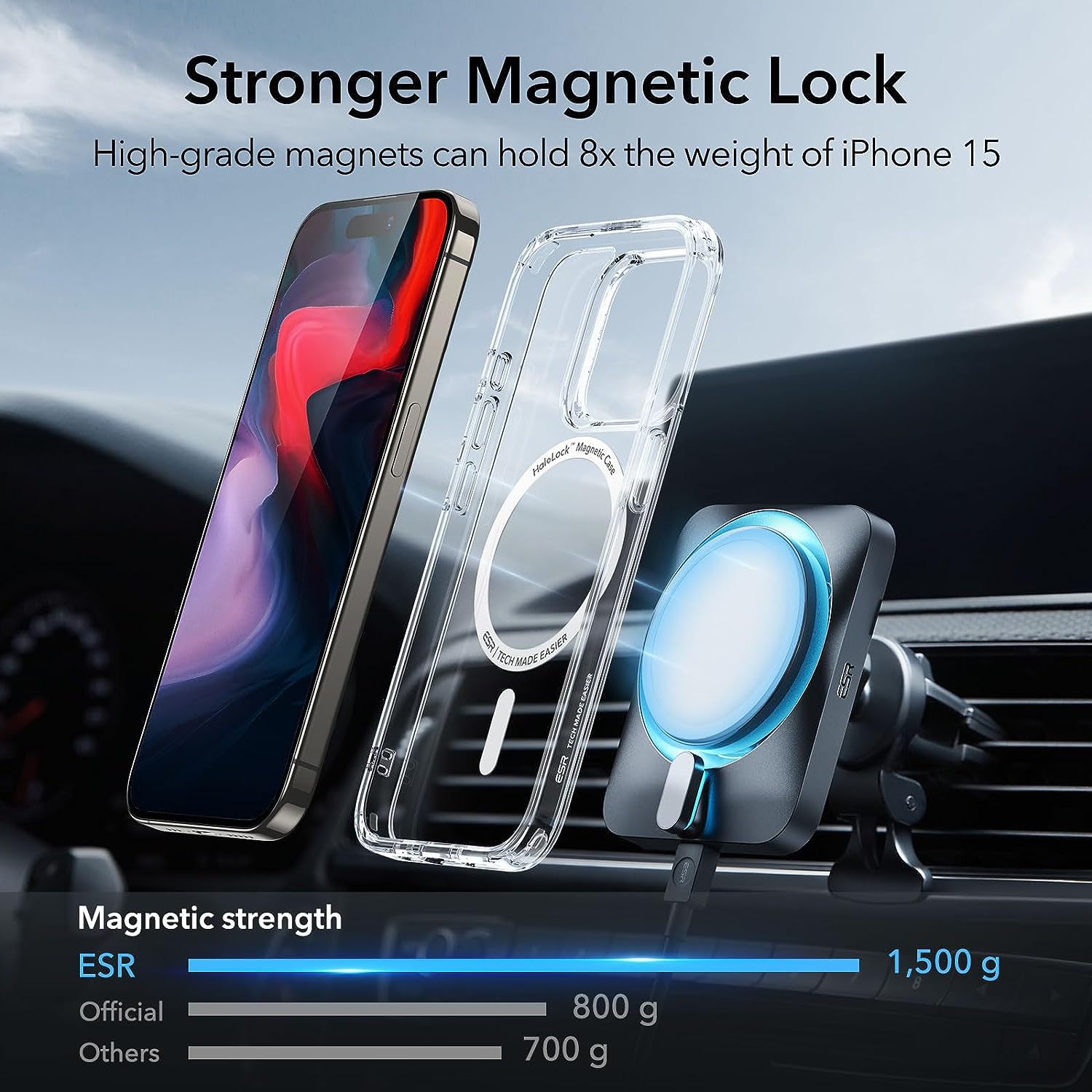• Stronger Magnetic Lock: powerful built-in magnets with 1,500 g of holding force enable faster, easier place-and-go wireless charging and a secure lock on any MagSafe accessory
