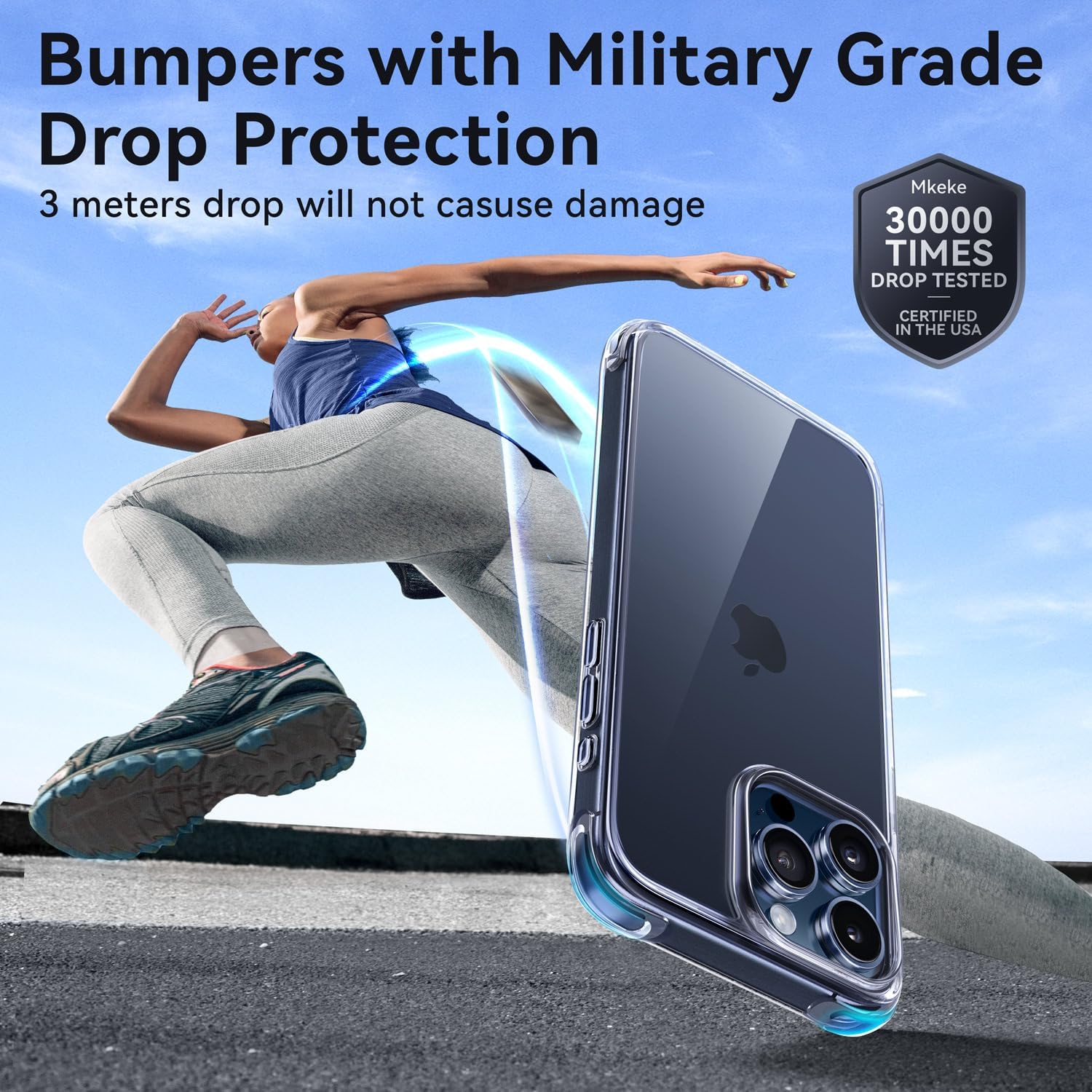 Mkeke for iPhone 15 Pro Case Clear, [Not Yellowing] [Military Grade Protection] Slim Shockproof Phone Cases for iPhone 15 Pro 2023