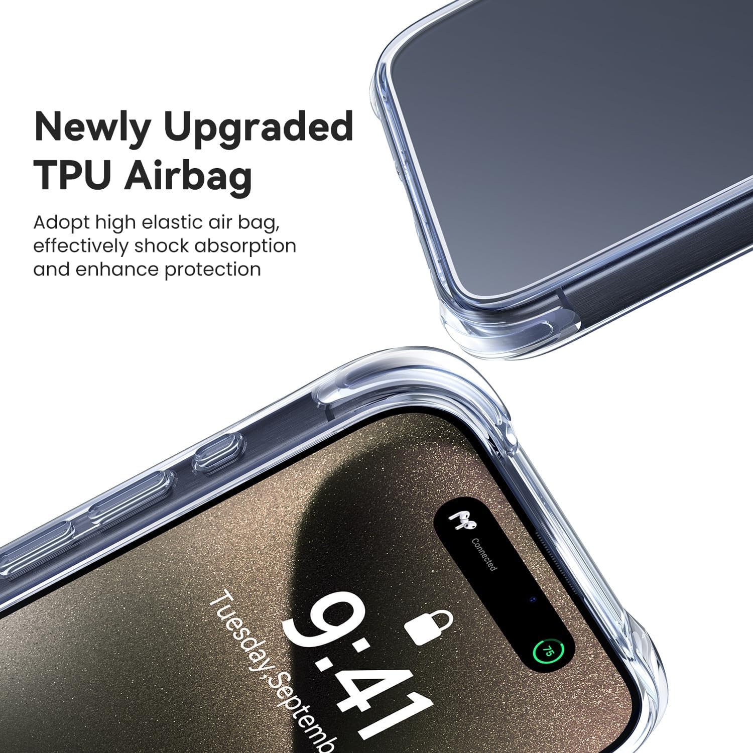 • The Clear case for iPhone 15 Pro was made of clear polycarbonate and flexible materials. Its slim form slides in and out of pockets easily while the edges give you a confident hold while Call Up, Texting, Gaming and Selfies.