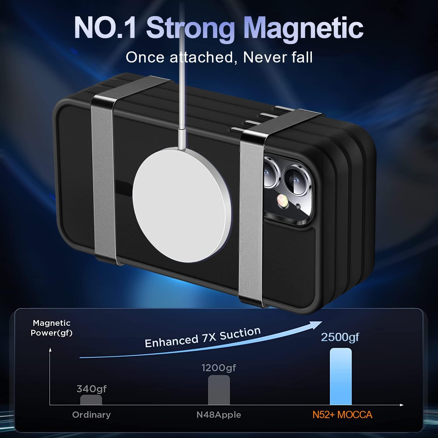 • 【Stronger Magnetic Case for iPhone 11】MOCCA iPhone 11 case is made of 38 pieces of N52+ super magnets, and its magnetic attractiveness reaches 2500GF, more than 7 times stronger than ordinary. Therefore, no matter how you shake it when charging, it will not fall.