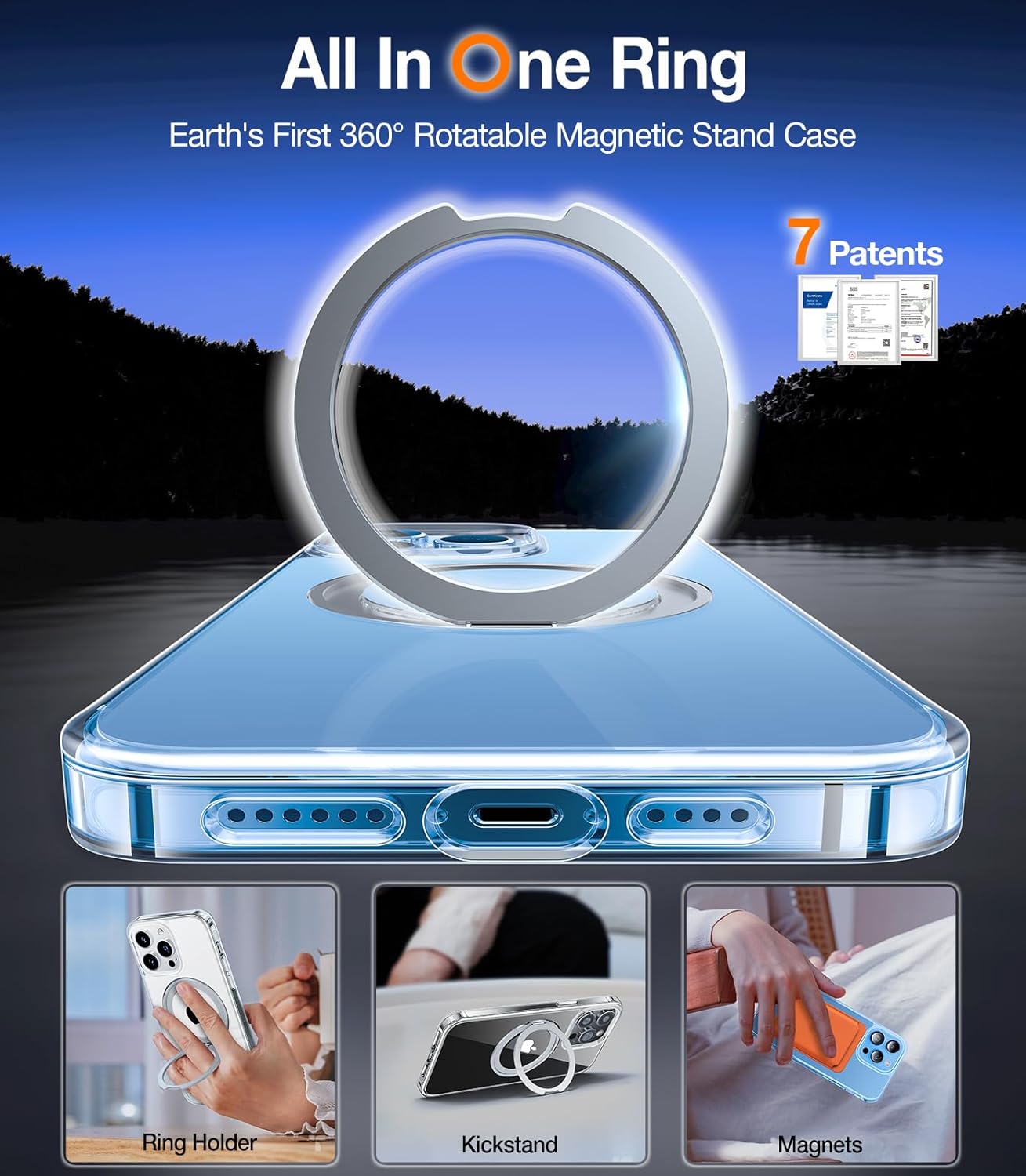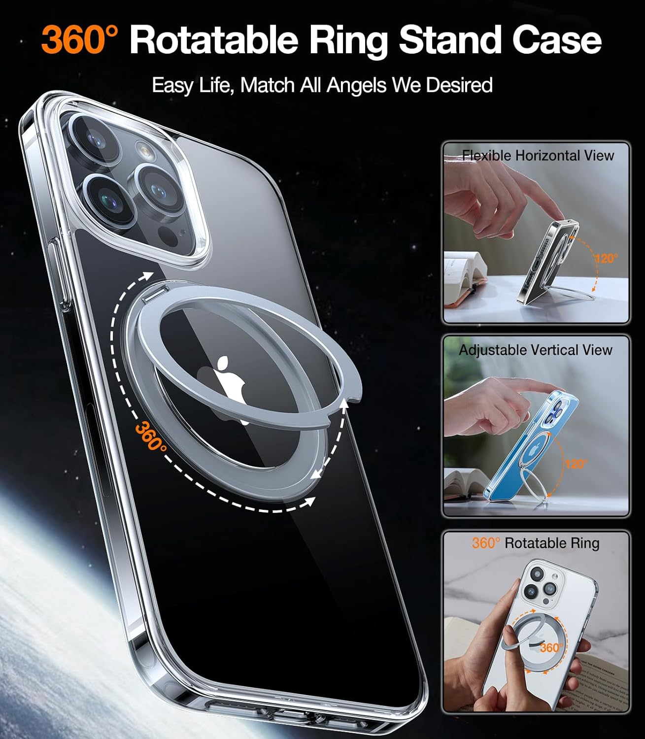 • ?[360°Rotatable Ring Stand] Designed for iPhone 15 pro max case with stand takes convenience to the next level by integrating a concealed kickstand to its back. Prop your phone up vertically or horizontally when learning, working, playing, or watching videos, etc. It also can double as a ring holder, great for securing your grip when taking selfies. This hideable stand has an unobtrusive design so you won't feel any bulk on the surface when it's folded