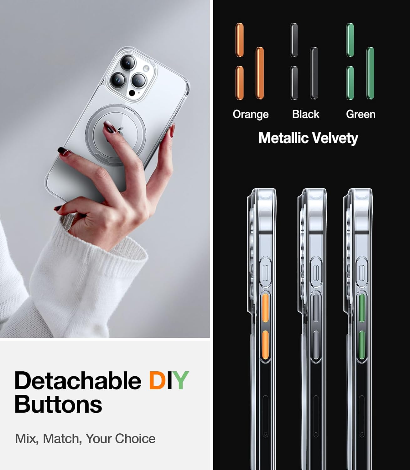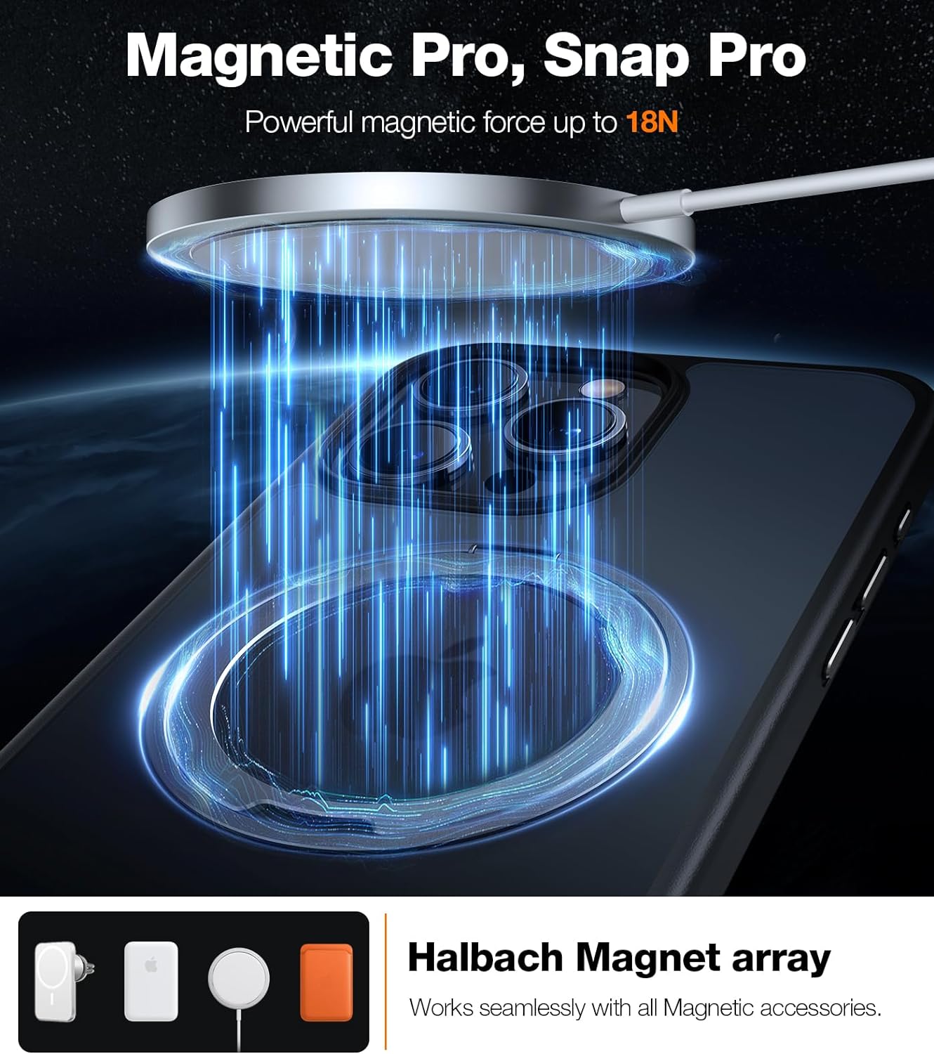 • ?[Pioneering SuperStrong Magnets] Designed for iPhone 15 pro max magnetic case built-in Halbach magnet array includes 38 strong neodymium magnets to deliver a smooth and even faster wireless charging experience. Shakable stability ensures your phone can be attached magnetically and securely onto your car mount, wallet, power bank, etc. 100% uninterrupted charging with 0% charging loss, and compatible with all MagSafe accessories (power bank, wallet, car mount and so on)