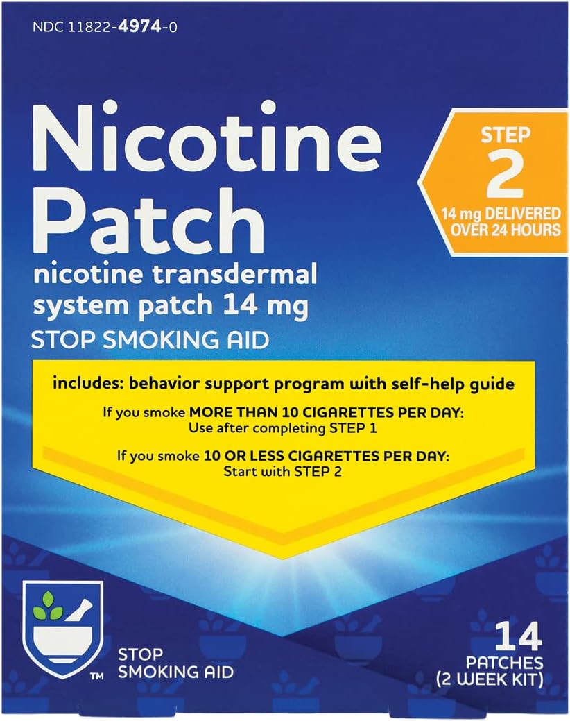Rite Aid Nicotine Transdermal System Patch, Step 2, 14mg - 14 ct, Nicotine Patches Step 2 | Quit Smoking, Quit Smoking Aid | Nicotine Patch | Bonus Behavioral Support Program Information Included