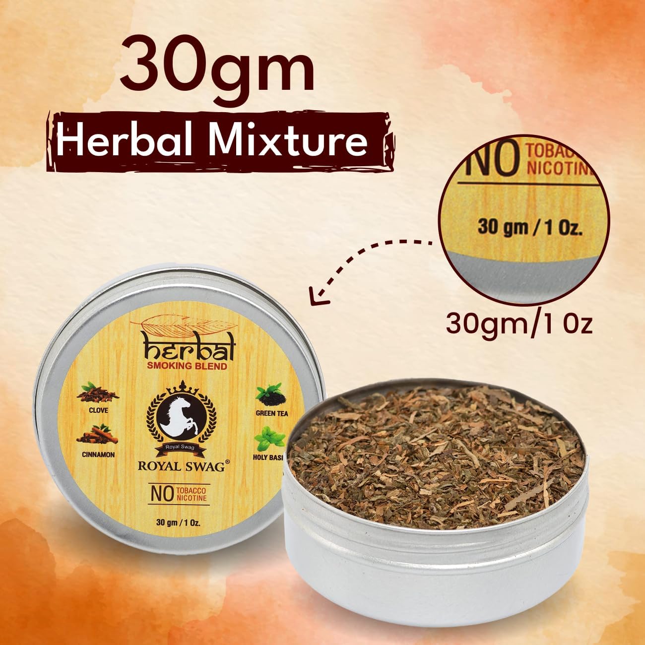 • 1 Container Contain - 30 Gram of Ayurvedic Smoking Blend