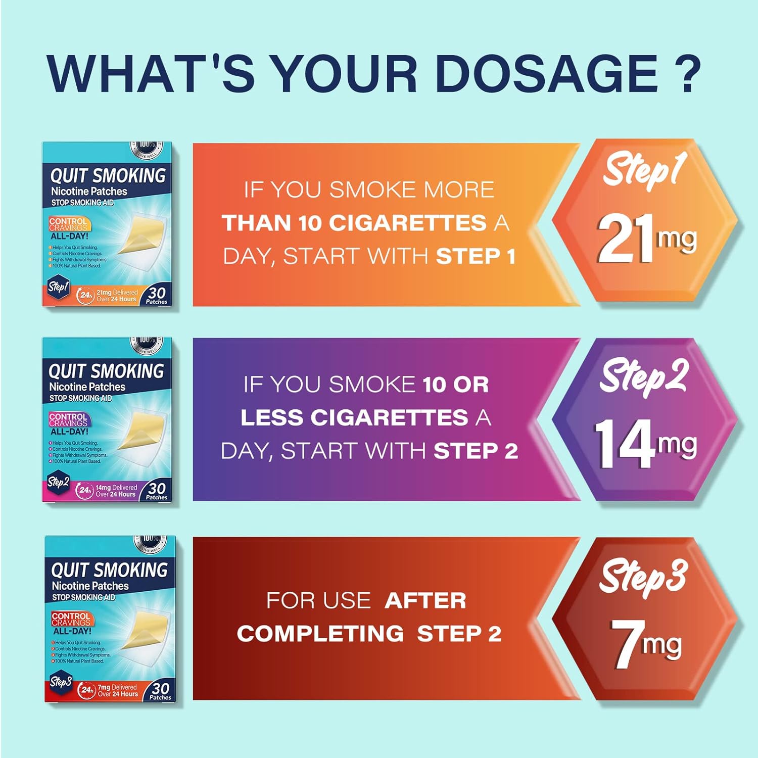 • 30 Count Patches, Reducing It --- If you are having it more than 10 days, Start from Step 1 stop aid is recommended, it comes 30 count, after completely usage, it makes you close to your successful quit program