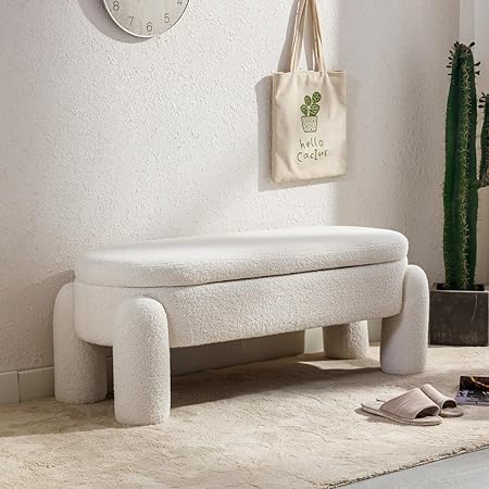 HEAH-YO Modern Bench Set of 1, Upholstered Lamb-Wool Fabric Bedroom Bench with Storage Function, Stylish Ottoman Entryway Bench with Solid Legs, Beige