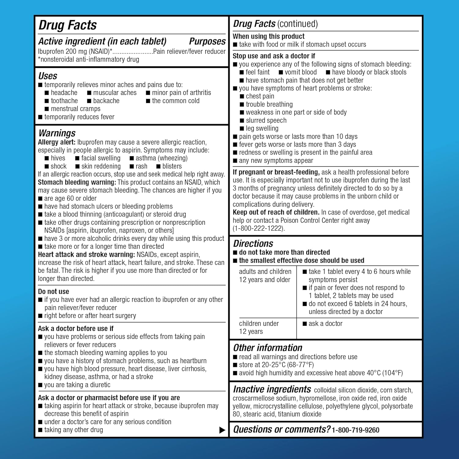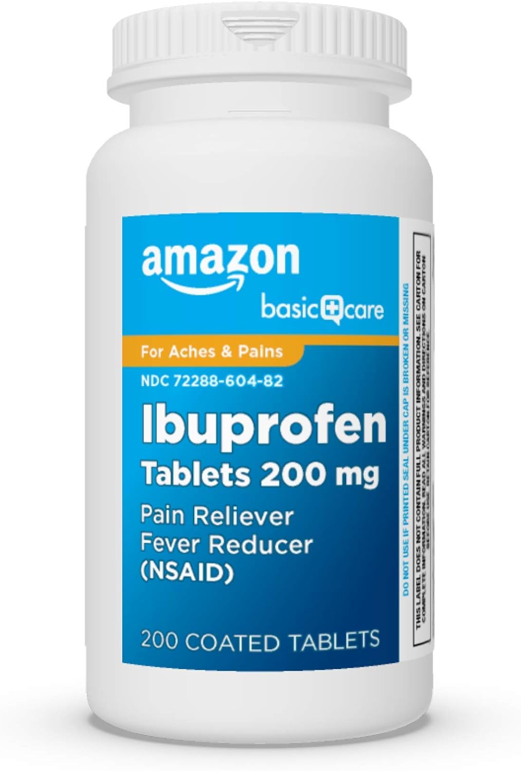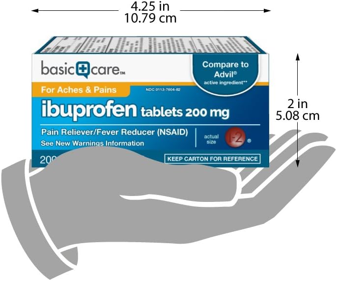 Compare to the active ingredient in Advil Ibuprofen Tablets. When aches, pain and fever try to take over, turn to Amazon Basic Care Ibuprofen Tablets, 200 mg for powerful pain relief you can trust. This nonsteroidal anti-inflammatory drug (NSAID) is tough on minor aches and pain such as muscular aches, minor arthritis pain, toothache, backache, menstrual cramps or minor aches and pains from the common cold. It also helps to temporarily reduce fever. Ibuprofen is the number one doctor recommended back pain OTC active ingredient (of U.S. physicians surveyed by an independent market research firm). A pain reliever and fever reducer for adults and children 12 years and over. Proven pain relief without a prescription. Brown coated tablets. Use for the temporary relief of aches and pains. This product does not contain gluten.