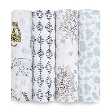 aden + anais Swaddle Blanket, Boutique Muslin Blankets for Girls & Boys, Baby Receiving Swaddles, Ideal Newborn & Infant Swaddling Set, Perfect Shower Gifts, 4 Pack, Jungle Toile