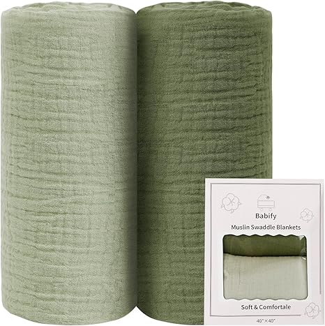 Baby Swaddle Blanket Neutral - Lightweight and Breathable Muslin Swaddles for Newborns - Receiving Blanket for Baby Boys and Girls (Green, 2pack)