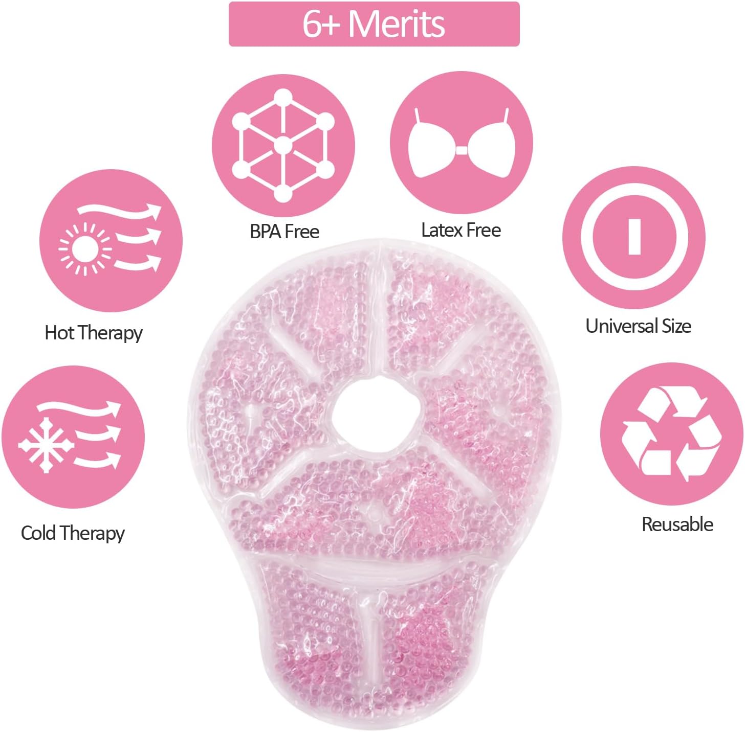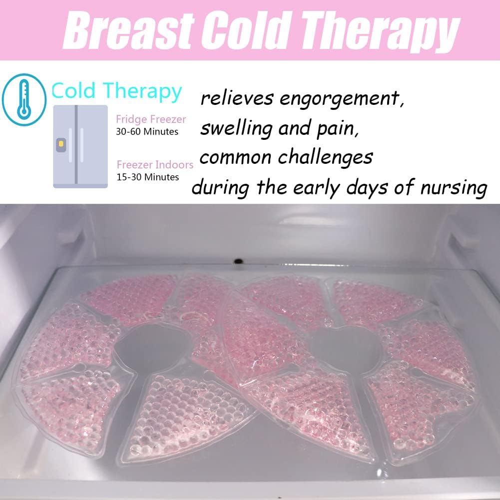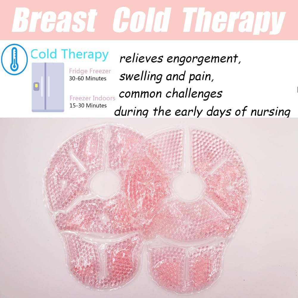 Breast Therapy Ice Packs, Hot and Cold Breast Pads, Breastfeeding Essentials Large Gel Bead Packs for Moms, 2 Pack