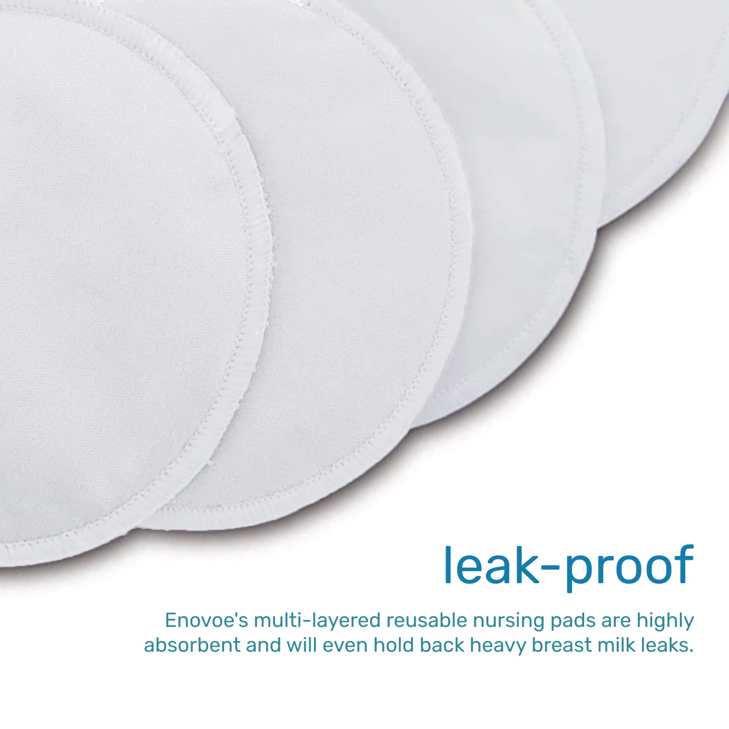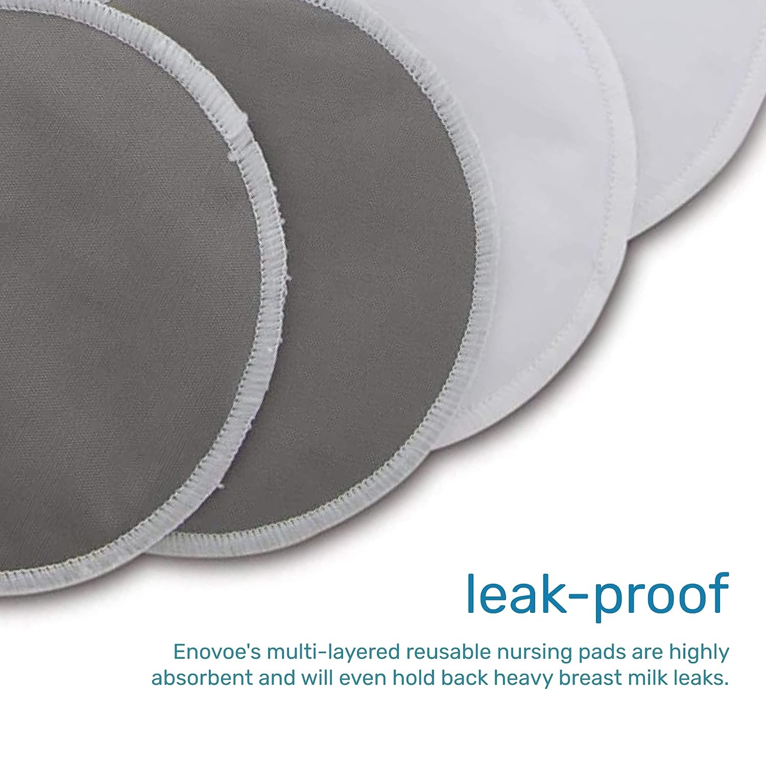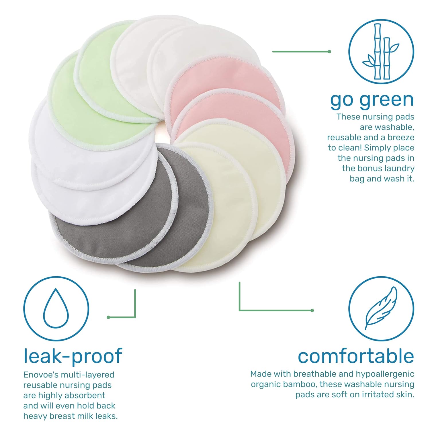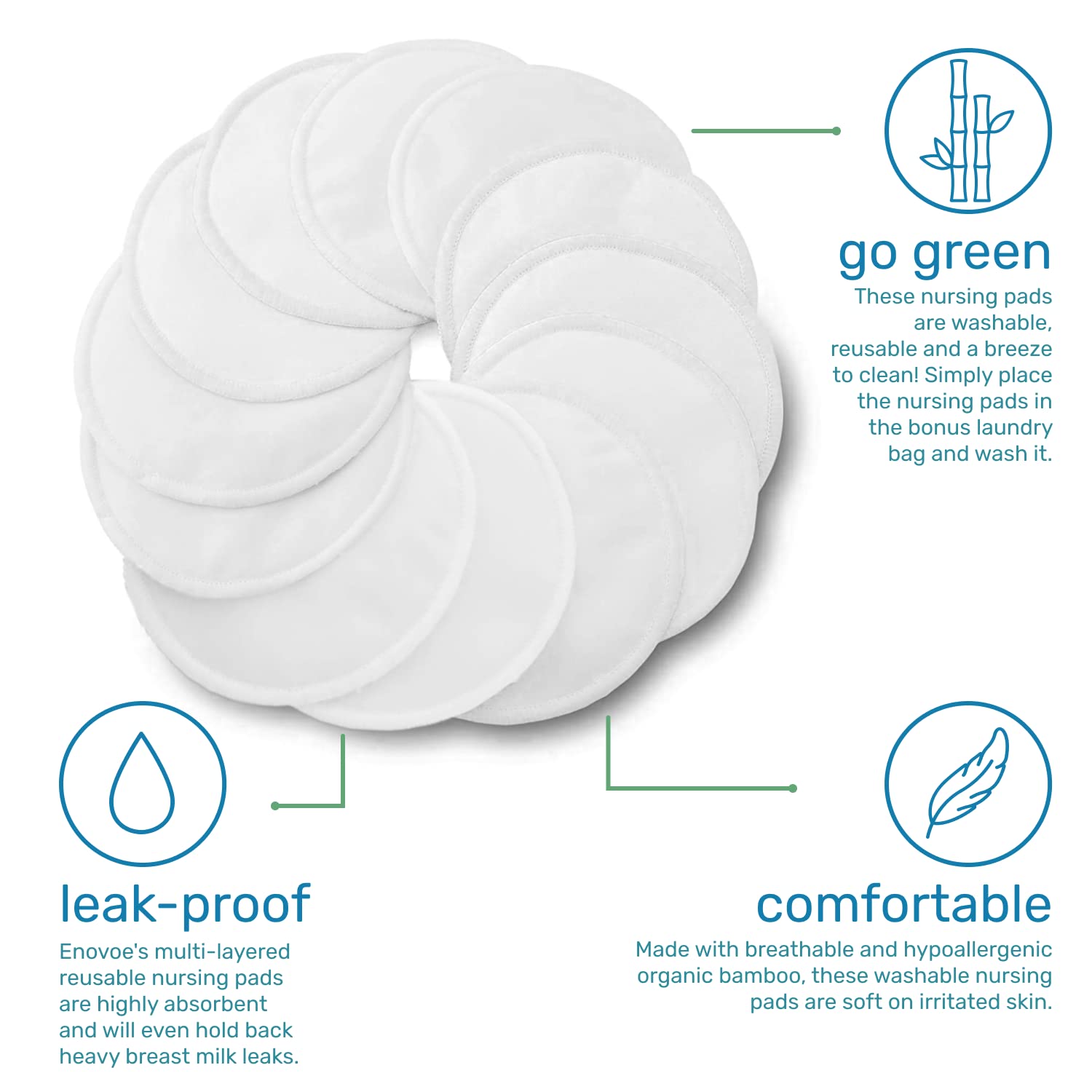 Enovoe Organic Bamboo Reusable Nursing Pads with Laundry Bag - Washable Breastfeeding Pads for Ultimate Protection - Nipple Pads/Breast Pads for Breastfeeding - White Pack of 12
