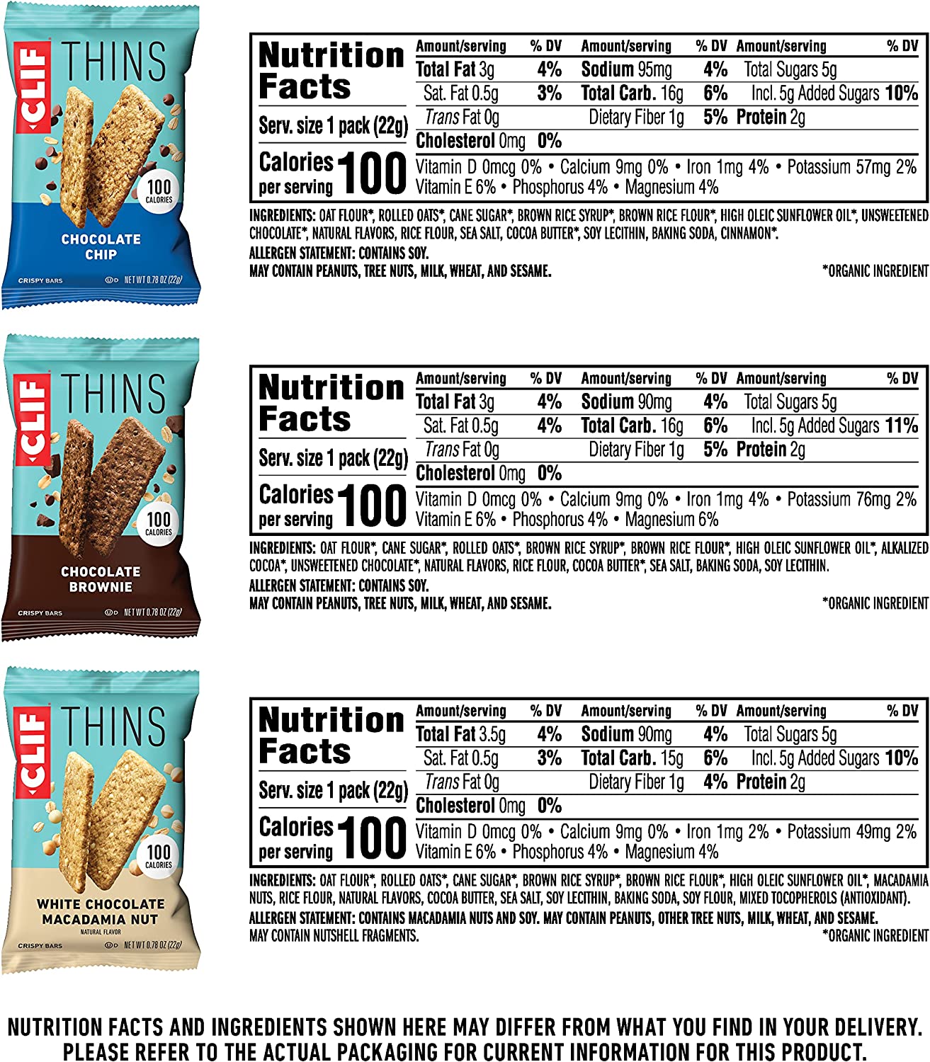 Our original CLIF BAR provides nutrition for sustained energy to get you ready for and keep you going during long, moderate-intensity activity lasting an hour or more. CLIF BAR Thins are a snackable take on the original CLIF BAR, intended as a delicious and crispy snack break throughout your day, with flavors inspired by the original CLIF BAR.