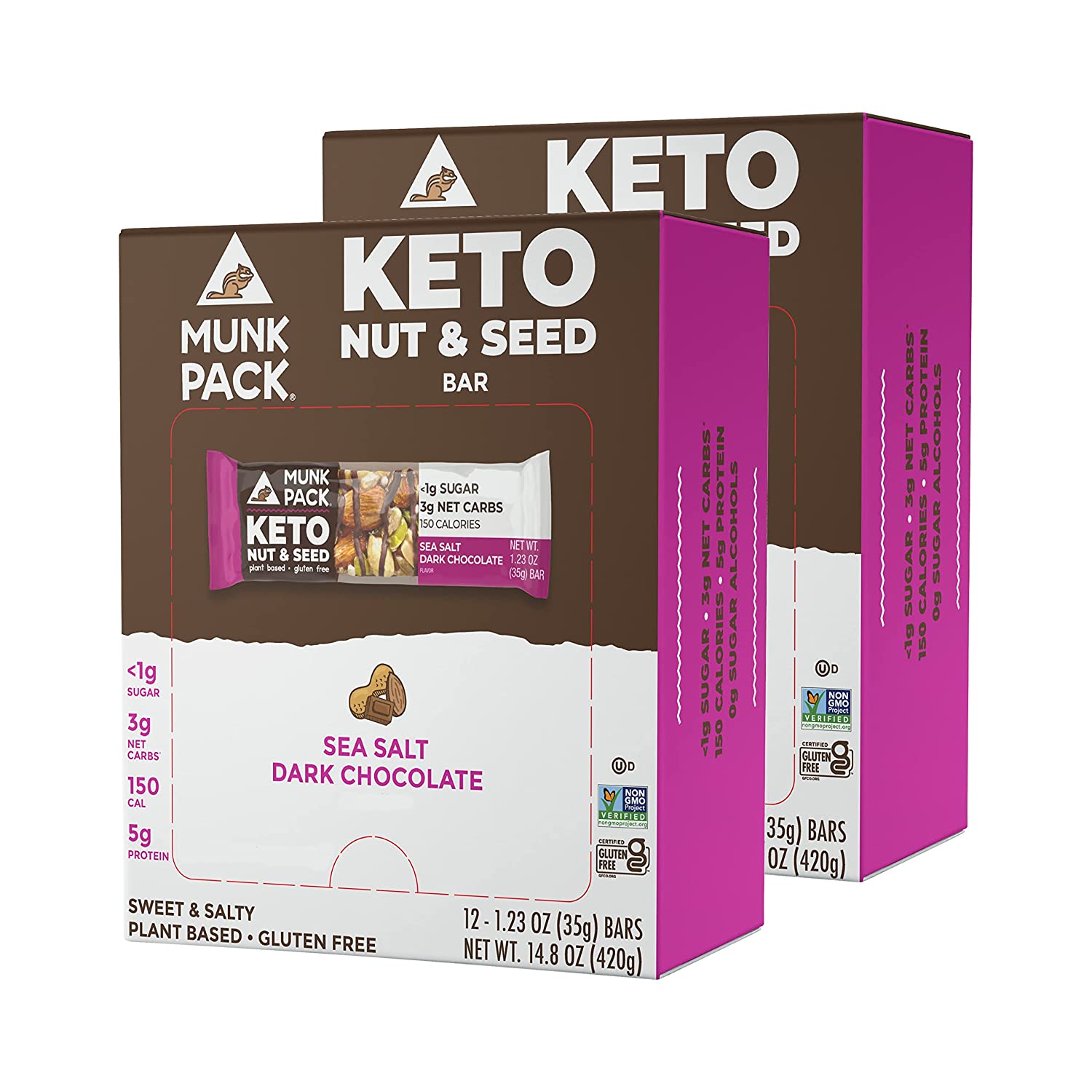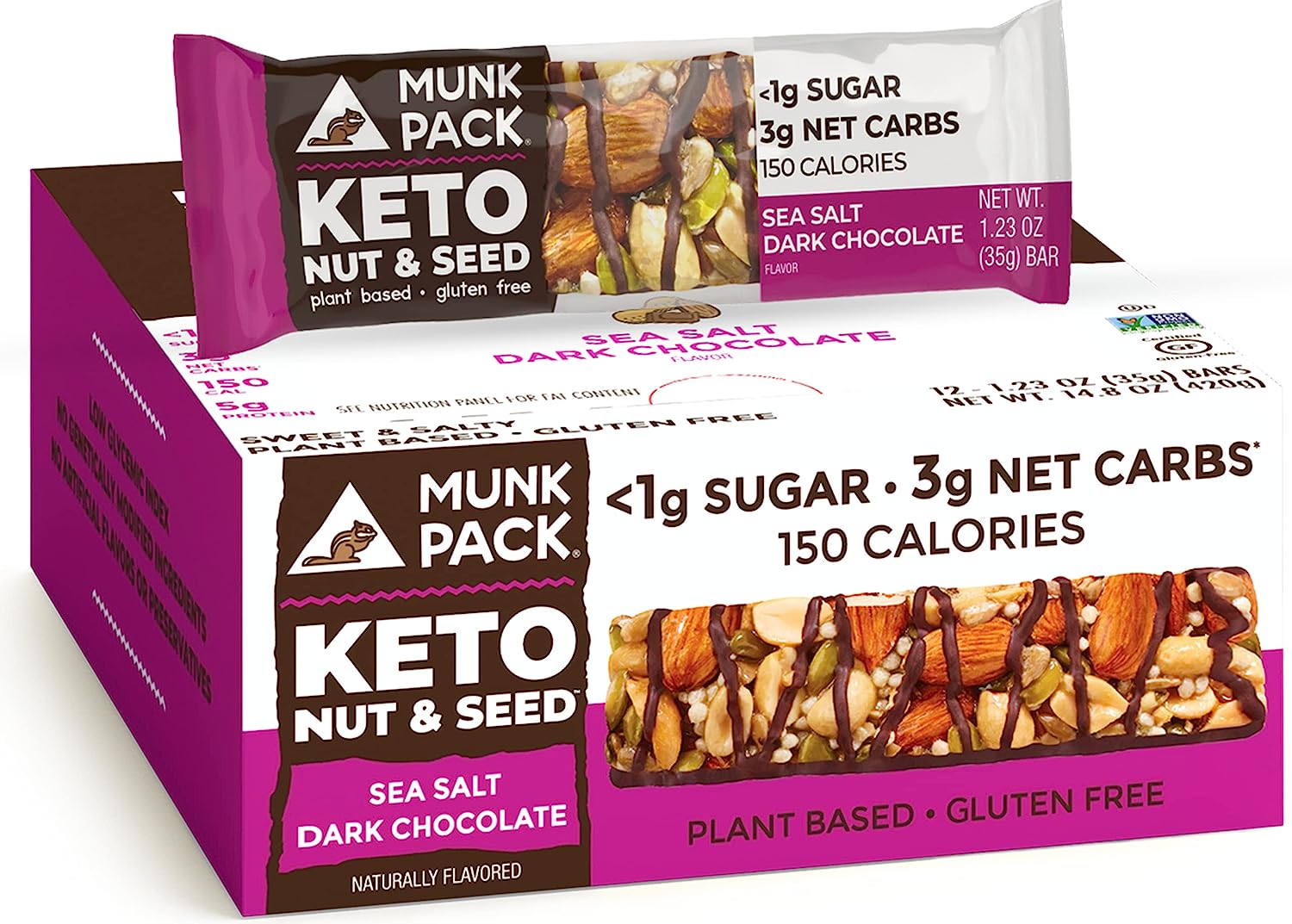 Munk Pack Keto Nut & Seed Bar | Variety Pack | 6 Bars | Low Carb Keto Snack | Plant Based and Gluten Free Treat | No Added Sugar | Keto Food | Keto Candy Bar | <1g Sugar, 3g Net Carbs