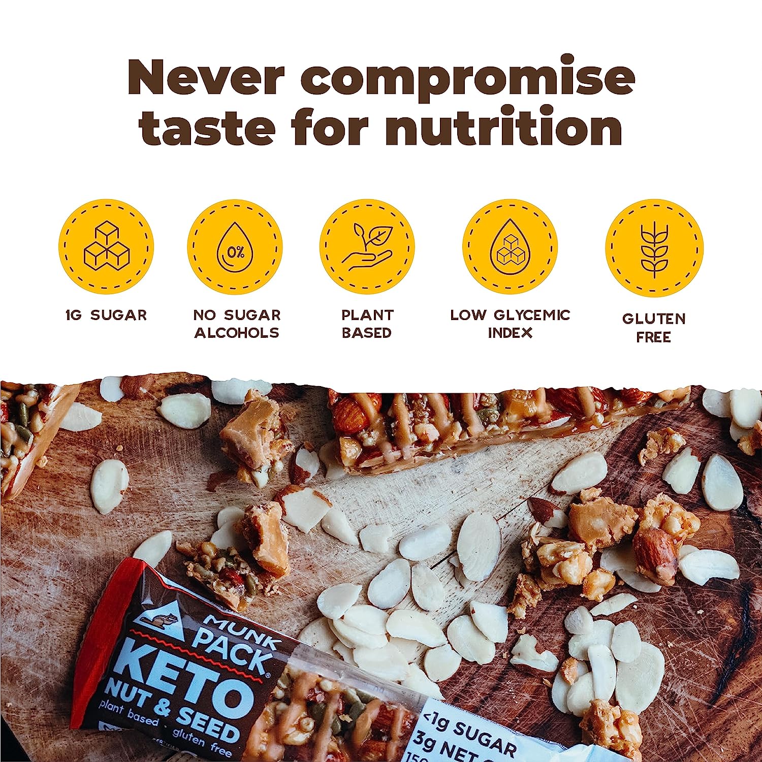 • NO ADDED SUGAR OR ARTIFICIAL INGREDIENTS: Munk Pack products are only 1g of sugar or less, so these bars have minimal effects on blood sugar and insulin levels. The keto snack bars have no added sugar, artificial preservatives or flavors, so you can enjoy these decadent candy bars without any guilt.