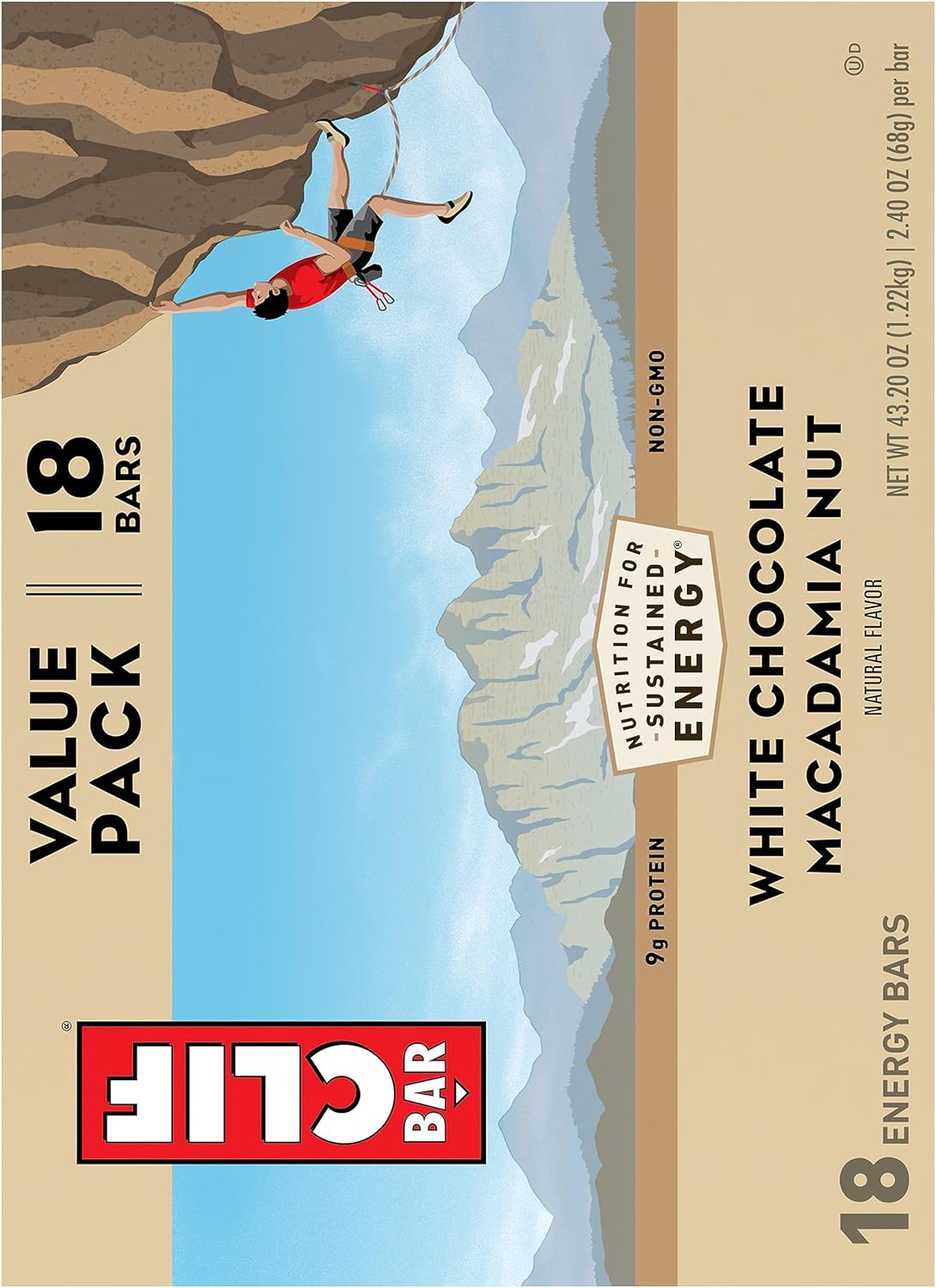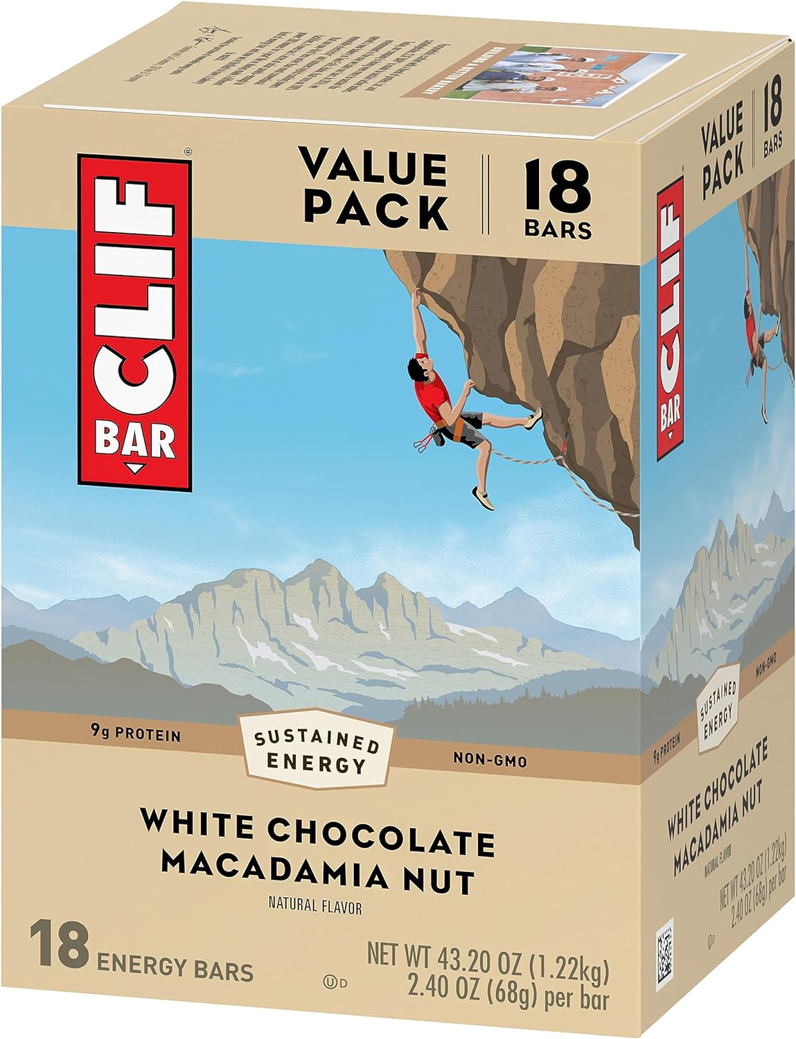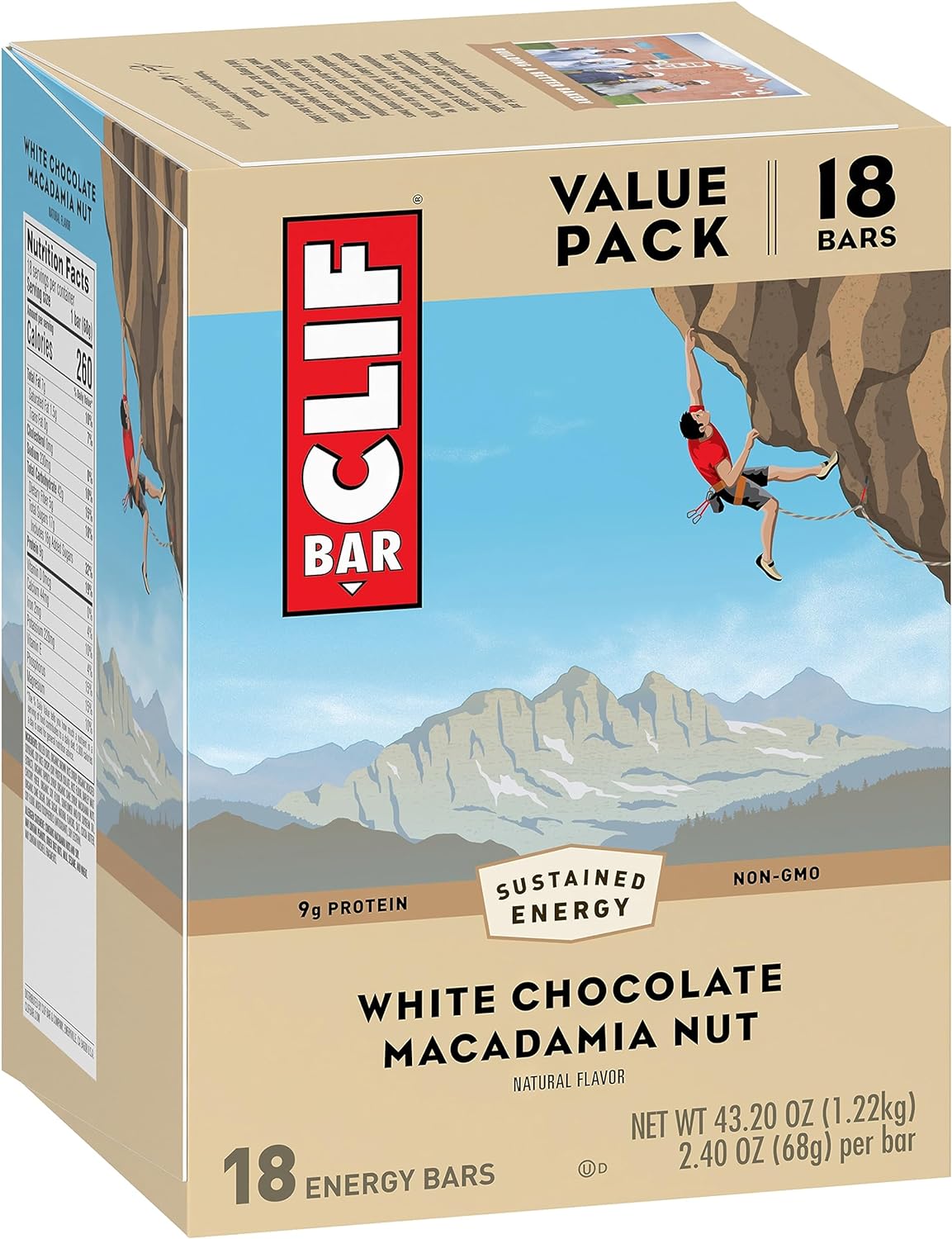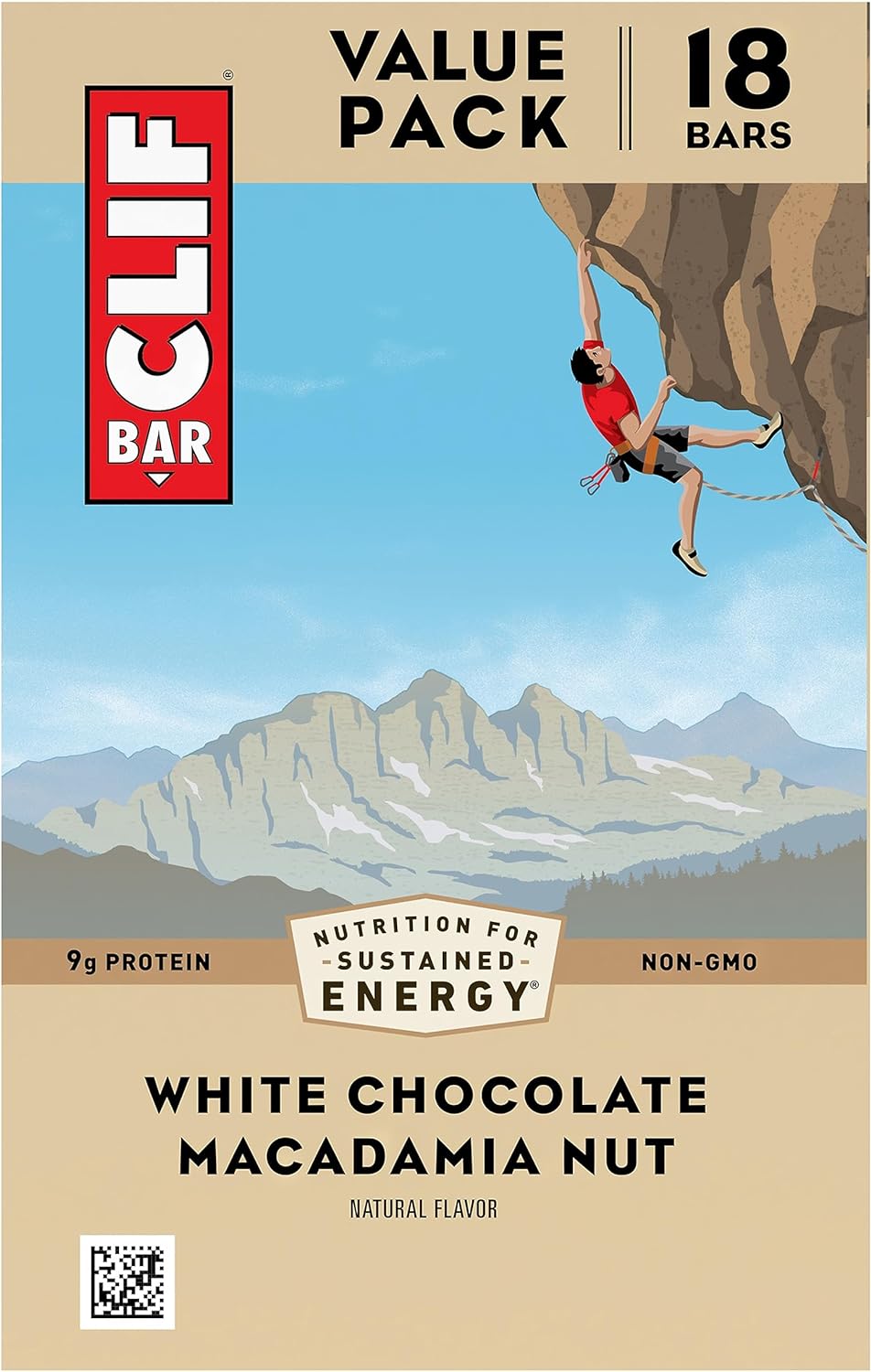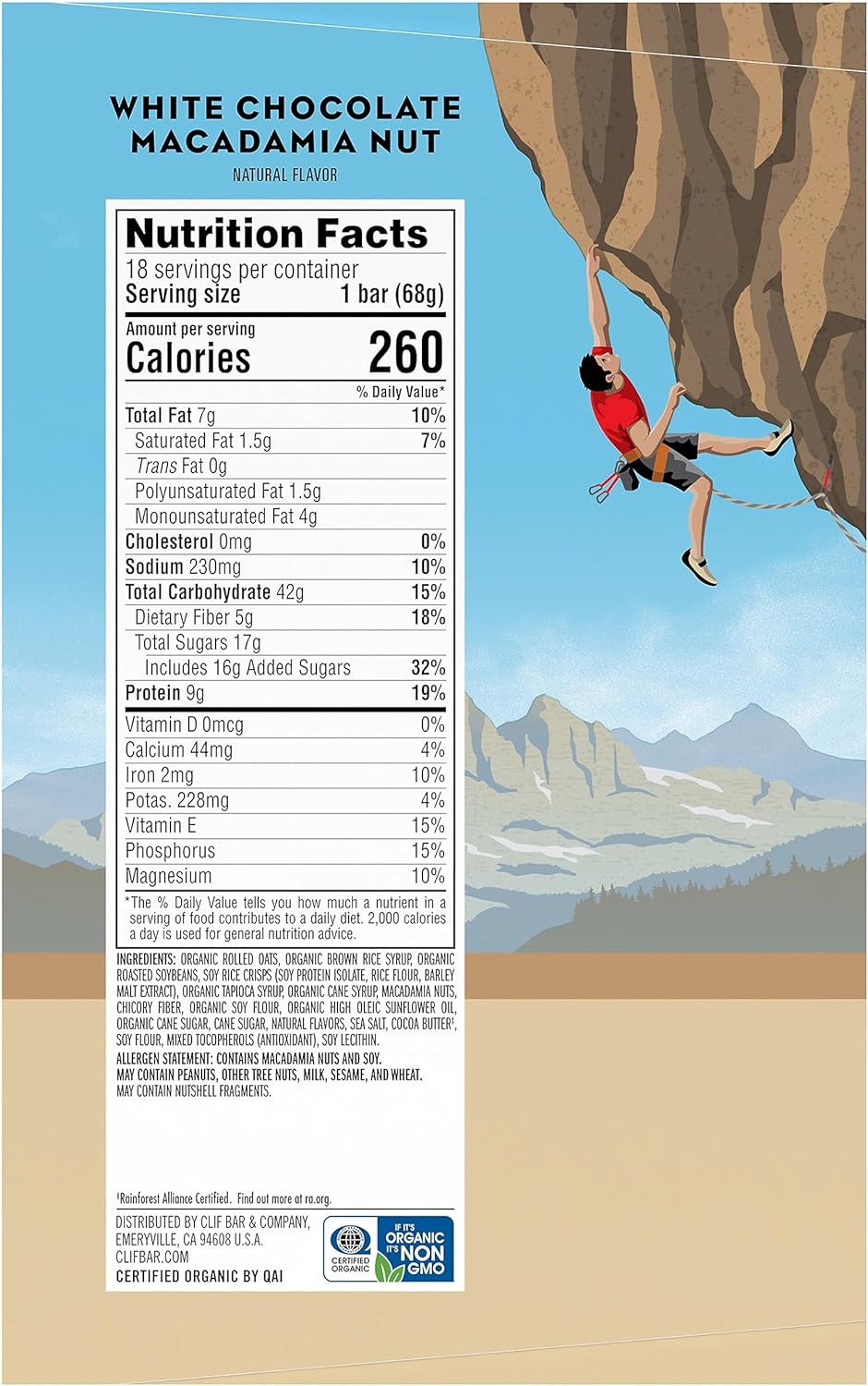 CLIF BAR - White Chocolate Macadamia Nut Flavor - Made with Organic Oats - Non-GMO - Plant Based - Energy Bars - 2.4 oz. (18 Pack)