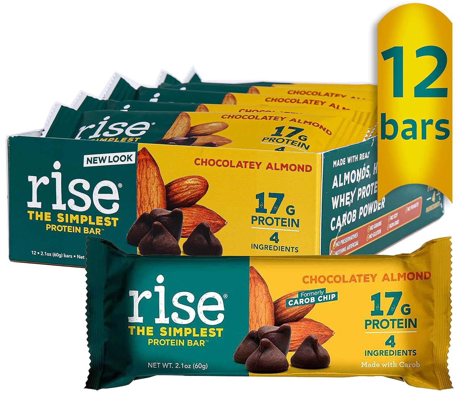 Rise Whey Protein Bars - Almond Honey | Healthy Breakfast Bar & Protein Snacks, 20g Protein, 4g Fiber, Just 3 Whole Food Ingredients, Non-GMO Healthy Snacks, Gluten-Free, Soy Free Bar, 12 Pack
