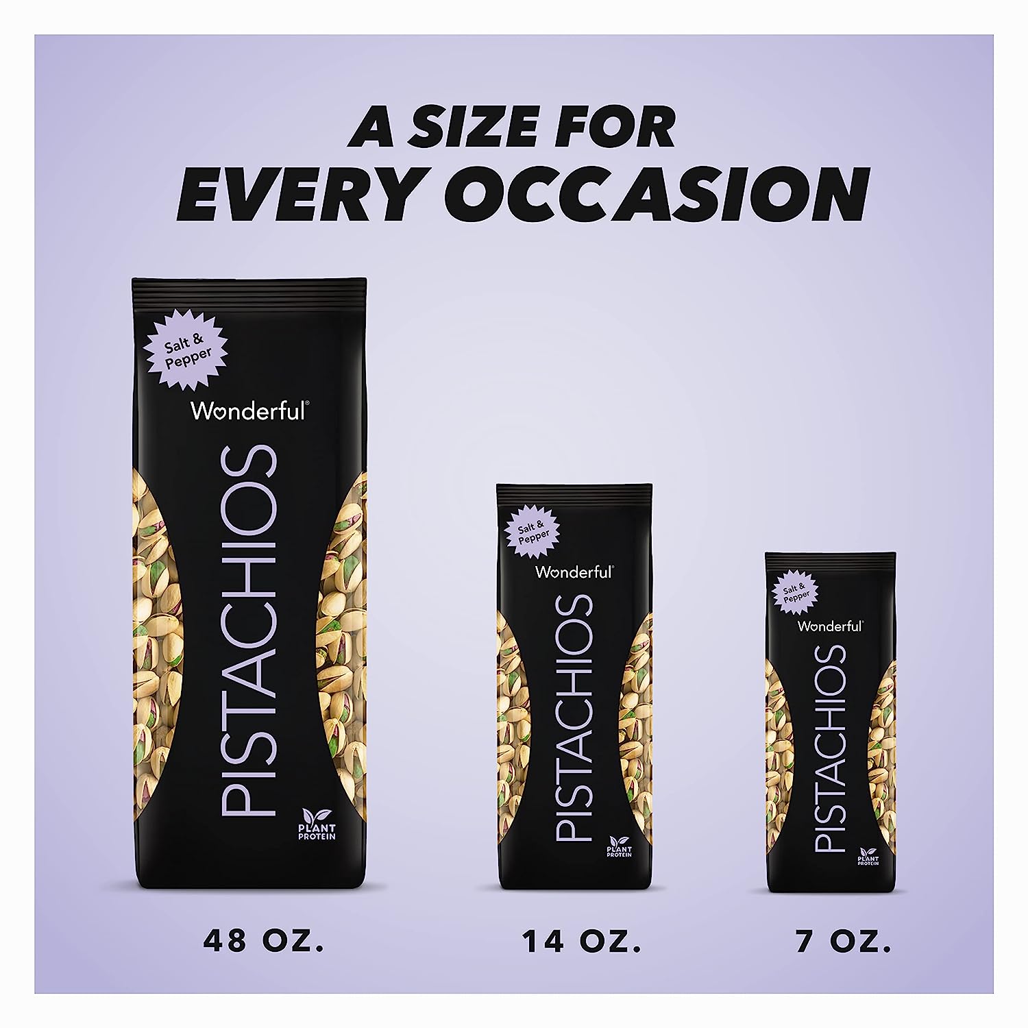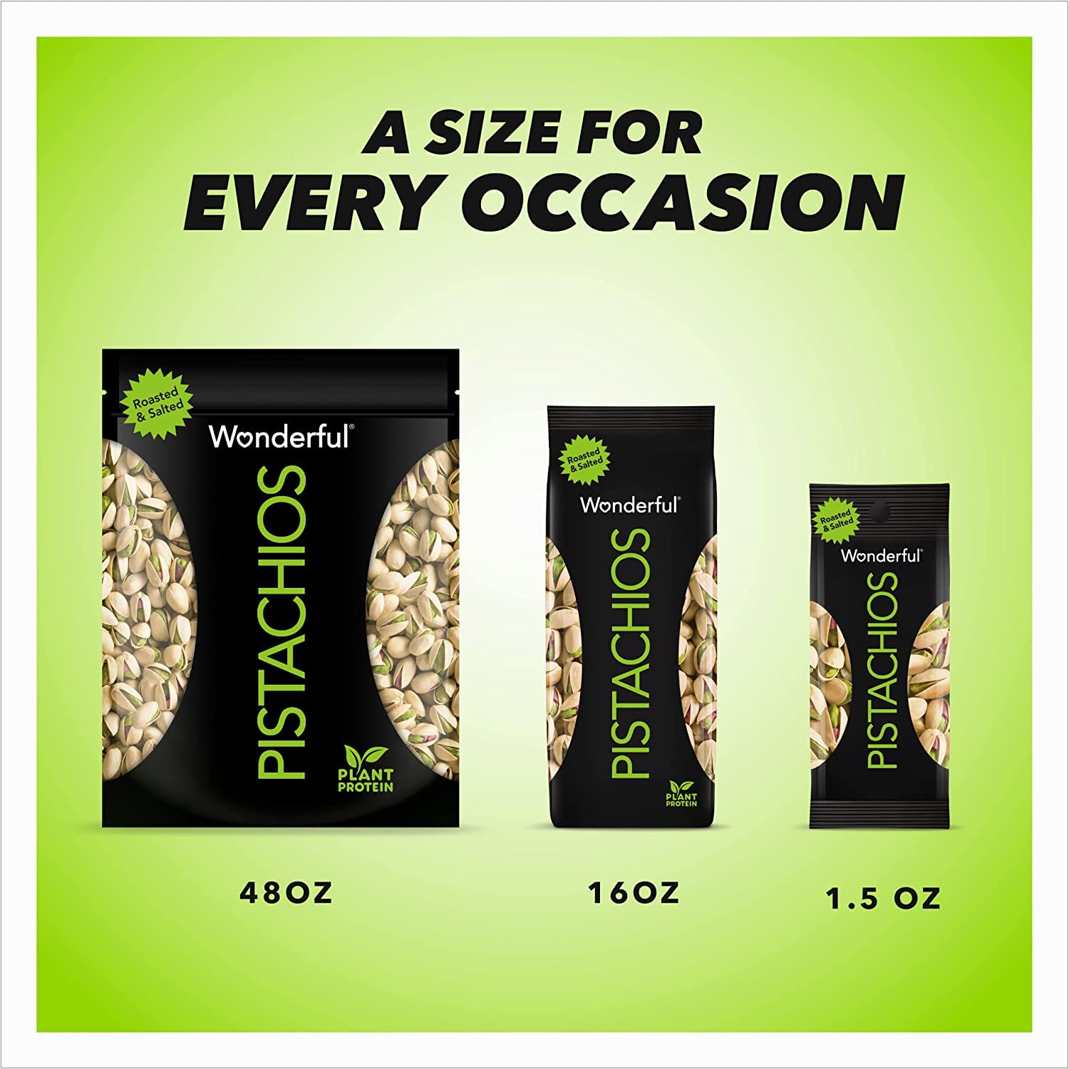 One 48 Ounce Resealable Bag of our Roasted & Salted In Shell Wonderful Pistachios. Wonderful Pistachios are a smart, healthy choice for folks around the world. Wonderful Pistachios grows all of its pistachios in California’s fertile San Joaquin Valley. The warm days and cool nights work in harmony with the region’s natural soils to create the perfect growing climate. We then carefully tend and harvest each pistachio using the latest in sustainable practices. Nutritious and healthy pistachios are great as part of an overall healthy diet. Pistachios are also a good source of plant-based protein. And in addition to tasting great, a single serving includes about 49 pistachios, enough to satisfy your snacking needs. Note: Contains Tree Nuts (pistachios)