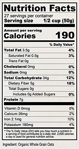 • Old Fashioned, 100% Whole Grain Organic Rolled Oats