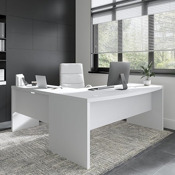 Bush Furniture L Shape Desk with Wire Management | Echo Collection Corner Bow Front Table for Home Office with Quick-to-Assemble Hardware, 72W, Pure White