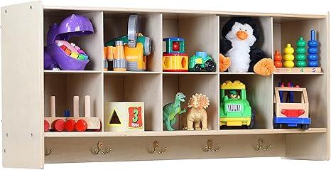 Cubby Storage Organizer Cubes, 10 Cubbies with Coat Hooks, Hanging Wall Cubby Shelf for Kids Toys, Daycare, Classroom, 47-inch Width