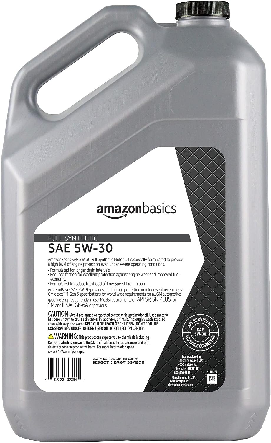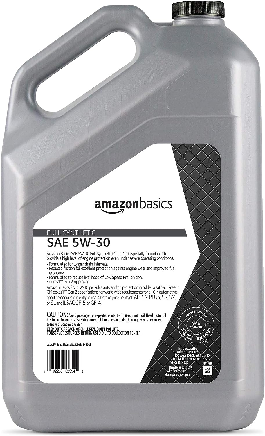 Amazon Basics Full Synthetic Motor Oil, SN Plus, 5W-30, 5 Quart