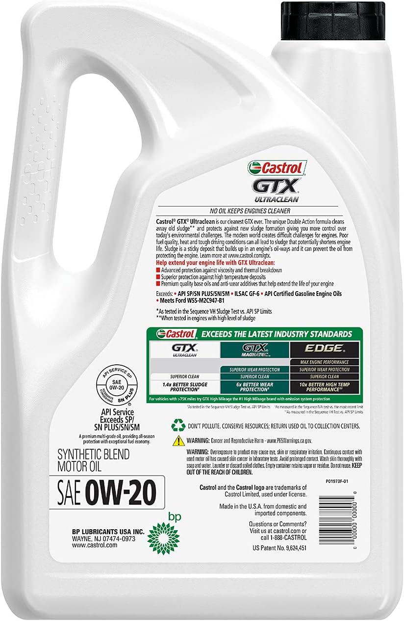 Castrol GTX Ultraclean 0W-20 Synthetic Blend Motor Oil