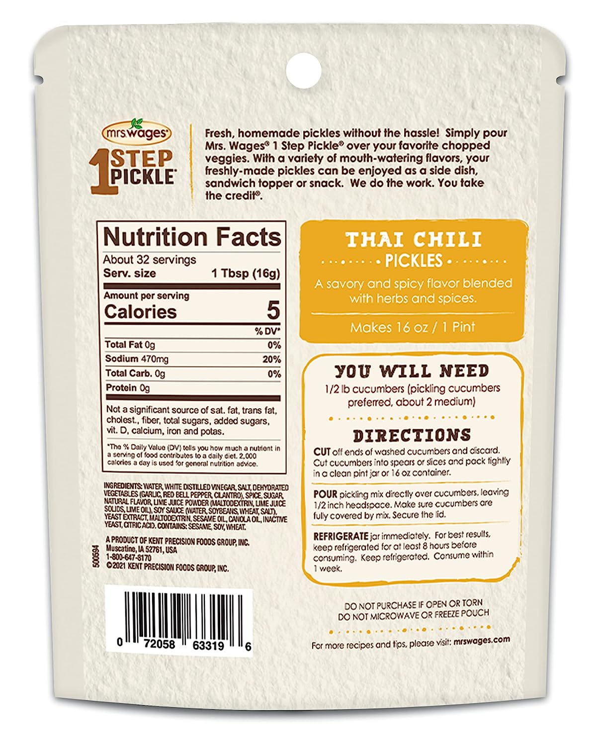 Fresh, homemade pickles without the hassle! Simply pour Mrs. Wages 1 Step Pickle over your favorite chopped veggies. With a variety of mouth-watering flavors, your freshly-made pickles can be enjoyed as a side dish, sandwich topper or snack. We do the work. You take the credit.
