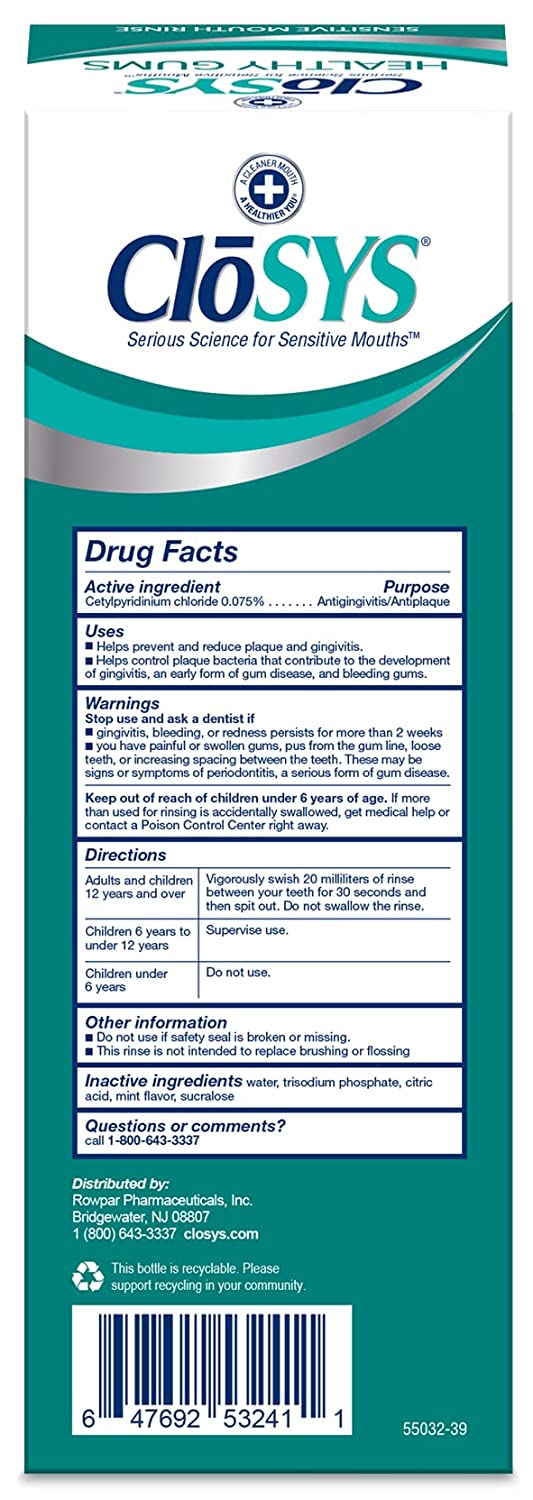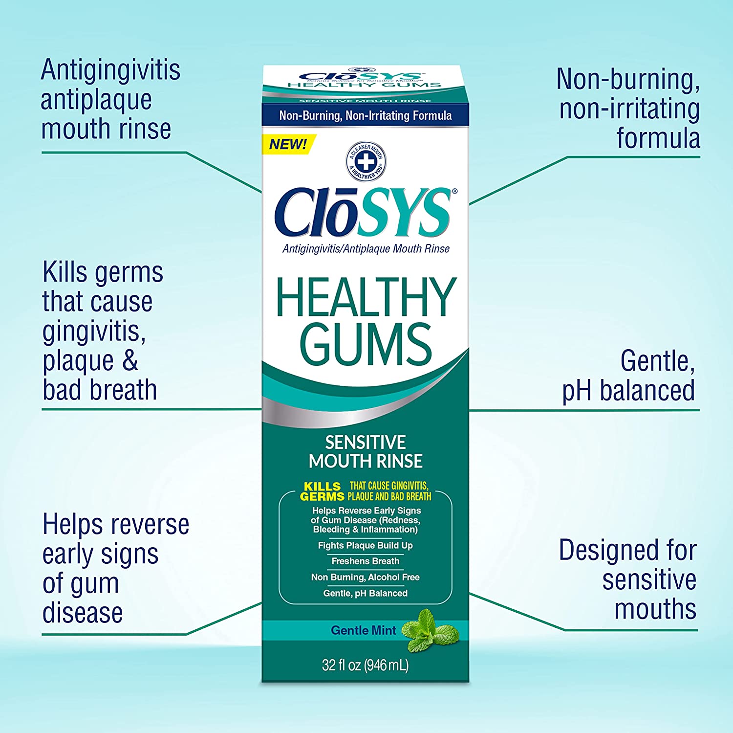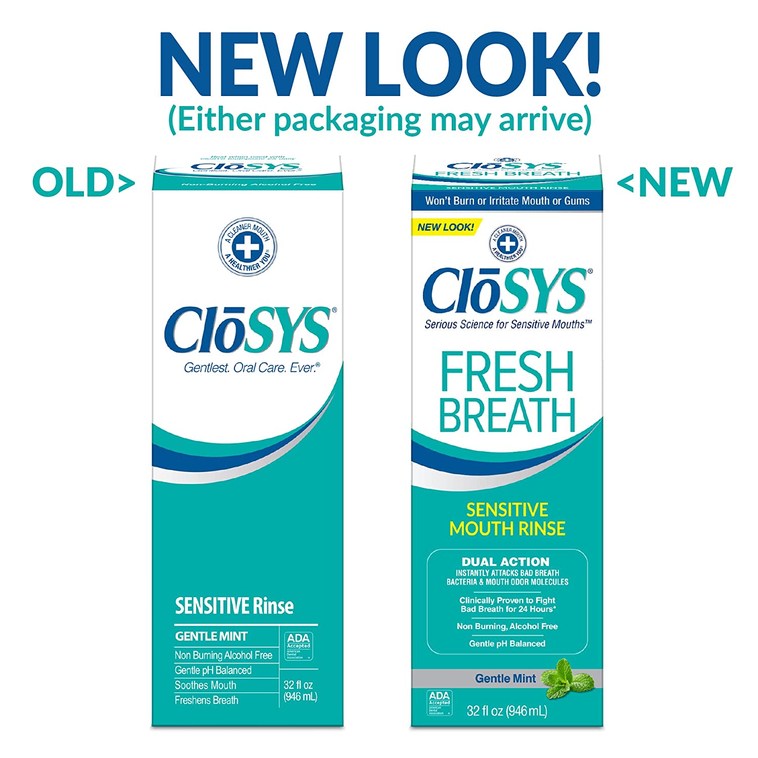 Why does most mouthwash burn and irritate? It doesn’t have to hurt to be effective. With CloSYS Mouthwashes you can protect your mouth from harmful bad breath germs and freshen your breath without the painful burn. CloSYS is one of the first mouthwashes to receive the American Dental Association seal for reducing bad breath. This gentle but powerful mouthwash is perfect for all ages because its patented formula is pH balanced and so gentle you’ll actually use it longer for better results. A 30-second rinse in the morning and evening after each brushing is easy, and all it takes to get great results. CloSYS Sensitive Mouthwash comes mildly flavored with a touch of gentle mint. Nothing overpowering or painful. Just a clean, fresh, soothing mouthwash you’ll actually use, because CloSYS is the Gentlest Oral Care Ever.