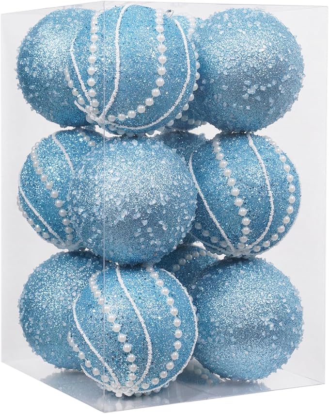3.15" Christmas Ball Ornaments 12pcs Sequin Christmas Balls Shatterproof Christmas Tree Ornaments Glitter Christmas Ornaments Plastic Hanging Pearl Balls for Xmas Trees, Holiday Party(Light Blue)