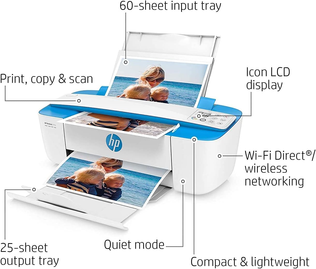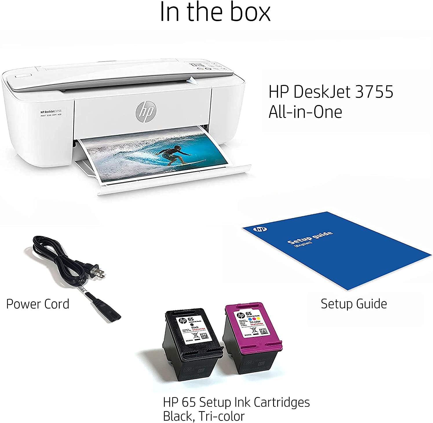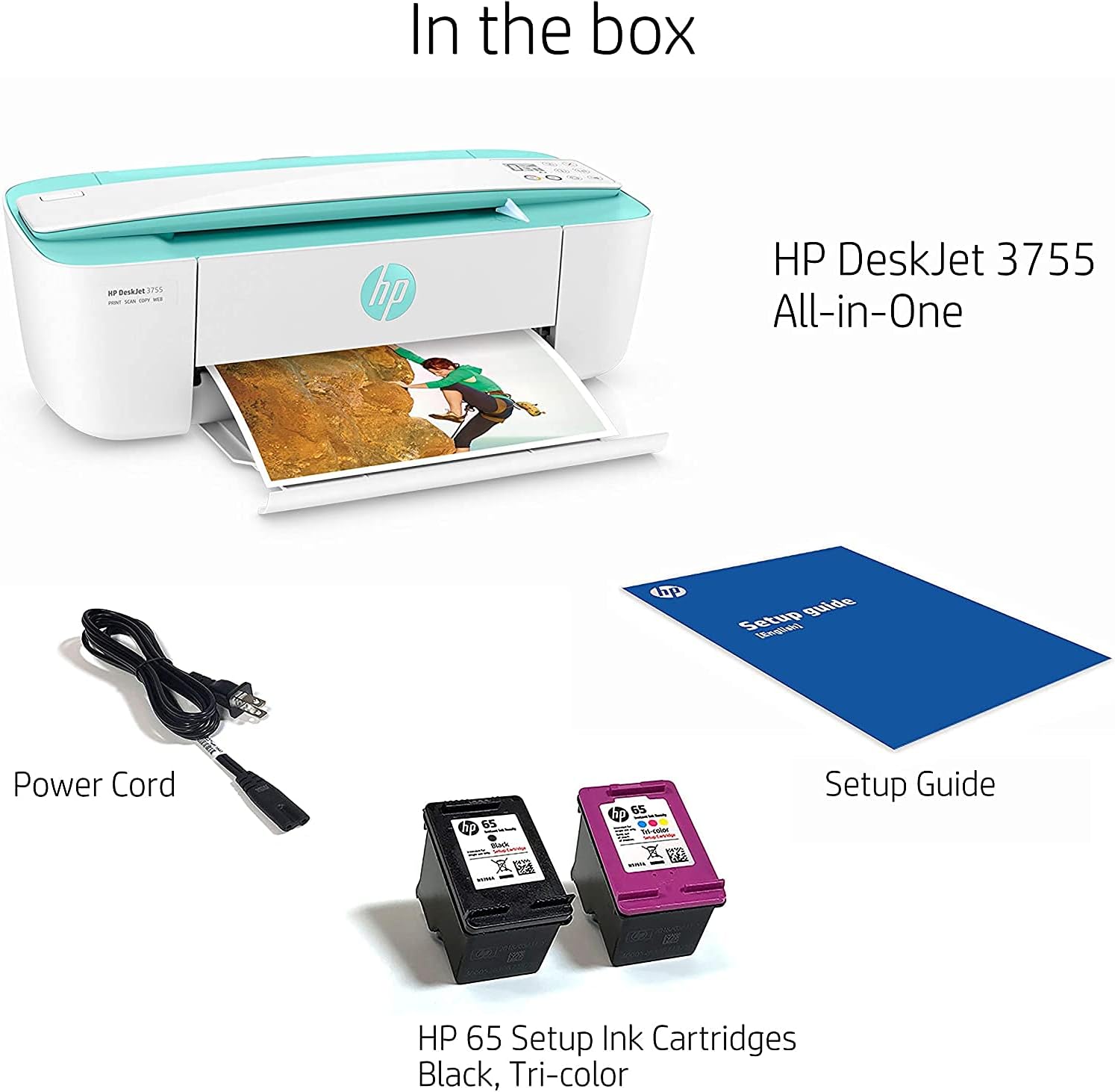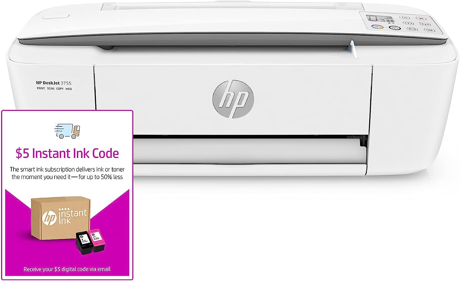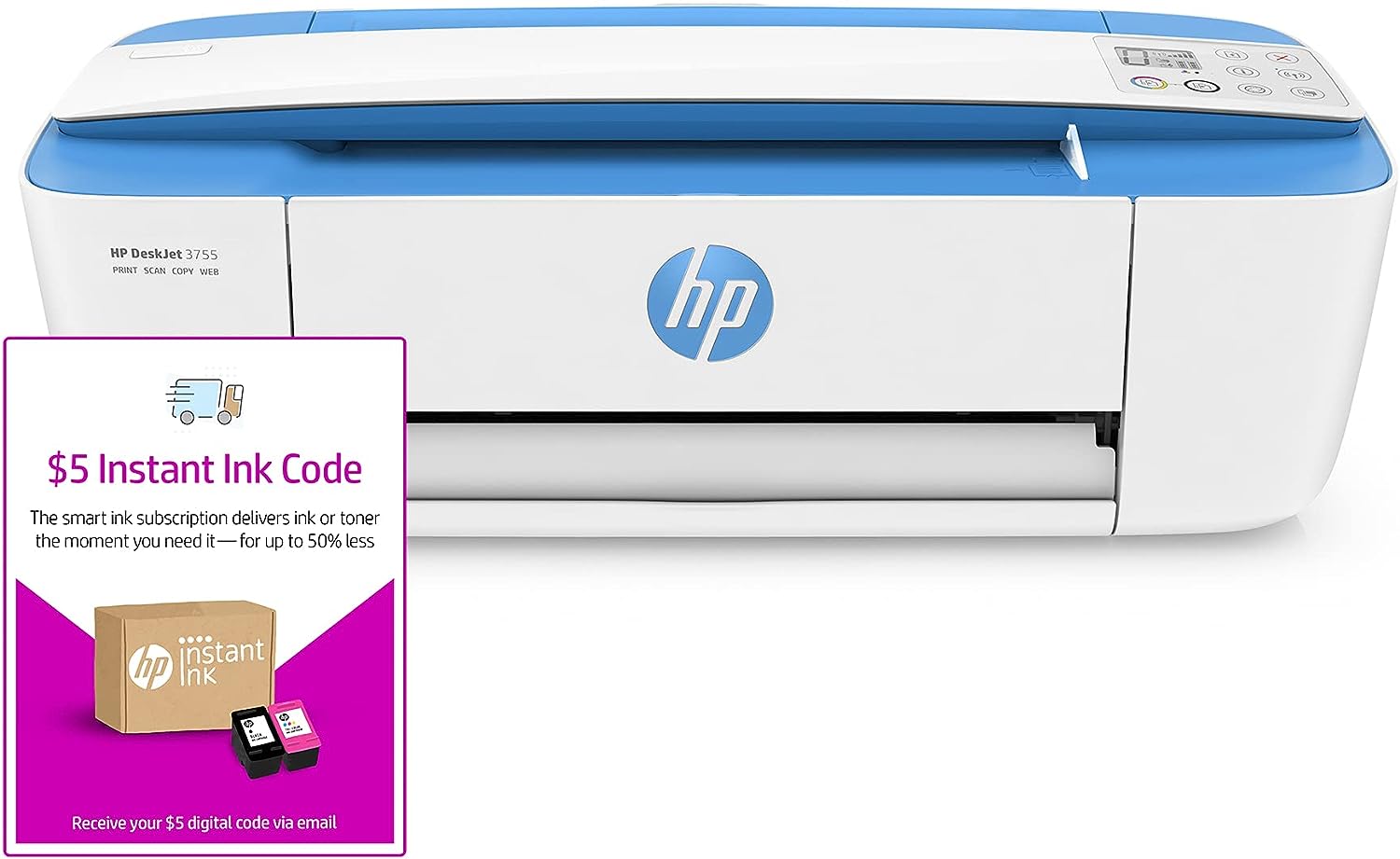 Save space and get the power you need with a small all-in-one printer for your home. The HP DeskJet 3755 (3700 series) inkjet printer comes with the scroll scan feature helps you easily handle most scan jobs, from plain paper to stiff media. This ultra compact printer is designed to fit where you need it. Save up to 50% on ink and never run out with HP Instant Ink. With Instant Ink, you print color or black-and-white for the same low price. Wirelessly print, scan, and copy what you need quickly and easily. Easily print anything you need from a variety of smartphones and tablets. Get connected quickly and start printing fast with easy setup from your smartphone or tablet.