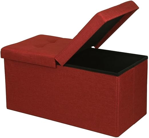 Otto & Ben 30" Storage Ottoman with SMART LIFT Top, Upholstered Tufted Bench, Foot Rest, Ruby Red
