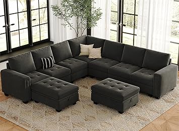 Belffin Modular Sectional Sofa U Shaped Sectional Couch with Storage Ottoman Velvet 9-Seater Convertible Sectional Sofa with Chaises Grey