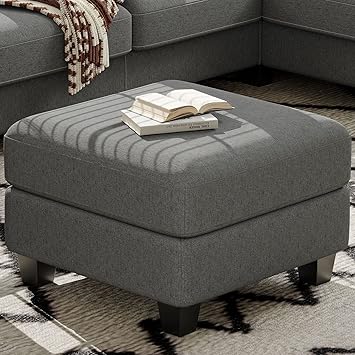 Belffin Upholstered Storage Ottoman with Coffee Table Top with Tray Square Foot Rest Convertible Ottoman Light Grey