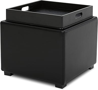 CHITA Storage Ottoman Cube with Tray, Footrest Stool Seat Serve as Side Table, PU Leather in Black