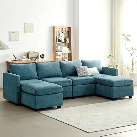 Cpintltr Storage Couch, Modular Sectional Seat Futon Sofa, L-Shaped Couch Linen Fabric with Reversible Chaise Sofa Bed with Ottomans, 4-Seats with 2 Ottoman Furniture for Living Room Apartment Office