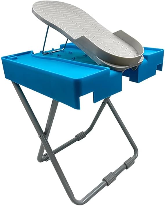 Folding Pedicure Stand Adjustable Non-Slip Foot Rest Sturdy Footrest Cushion Built-in Storage Posture Support with LED Magnifier Drying Fan for Easy at-Home Pedicures