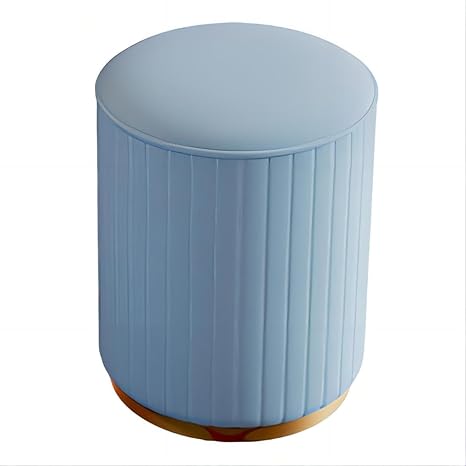 Modern Round Ottoman Upholstered Seat, Cosmetic Leather Dresser Stool, Living Room, Bedroom, Home Office Ottoman (Light Blue)