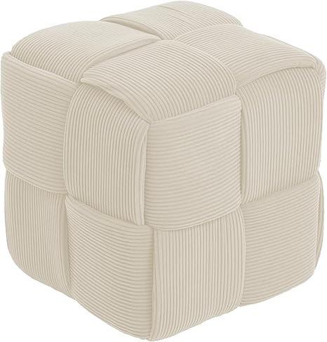 Ottoman Foot Rest Soft and Comfortable Ottoman Square Corduroy Woven Design Sofa Stool (White)