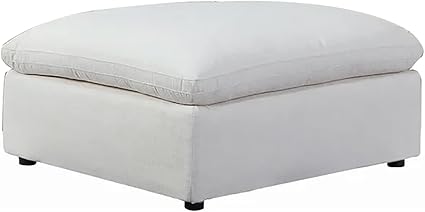 simple relax Linen-Like Fabric Cushion Seat Ottoman in Off-White Finish