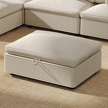Sofa Ottoman, Storage Couch Ottoman for Sectional Sofa, Rectangle Footrest, Shoe Stool, Coffee Table, Padded Seat for Home, Apartment, Dorm, Office (Beige, 33.07")
