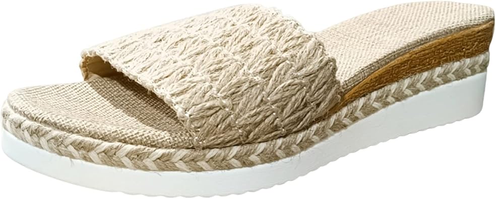 Ladies Fashion Summer Solid Grass Weaving Open Toe Thick Slope Heel Sandals Bed Slippers for Women Non Slip