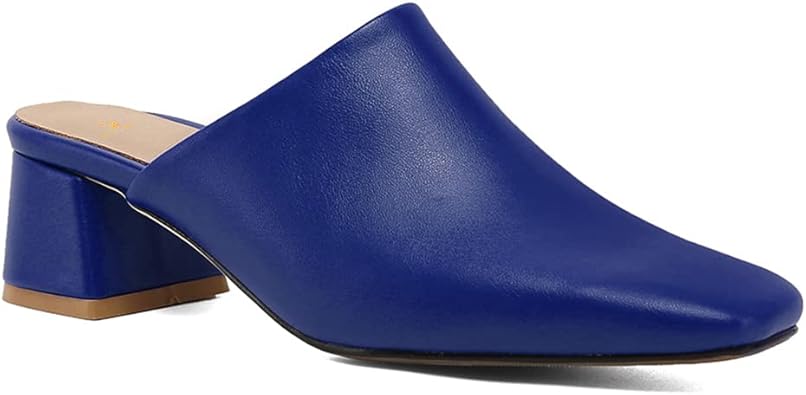 MOOMMO Women Chunky Heel Mules Closed Toe Square Toe Slip On Backless Pumps Mid Block Heel Office Casual Dress Shoes 5-17 US