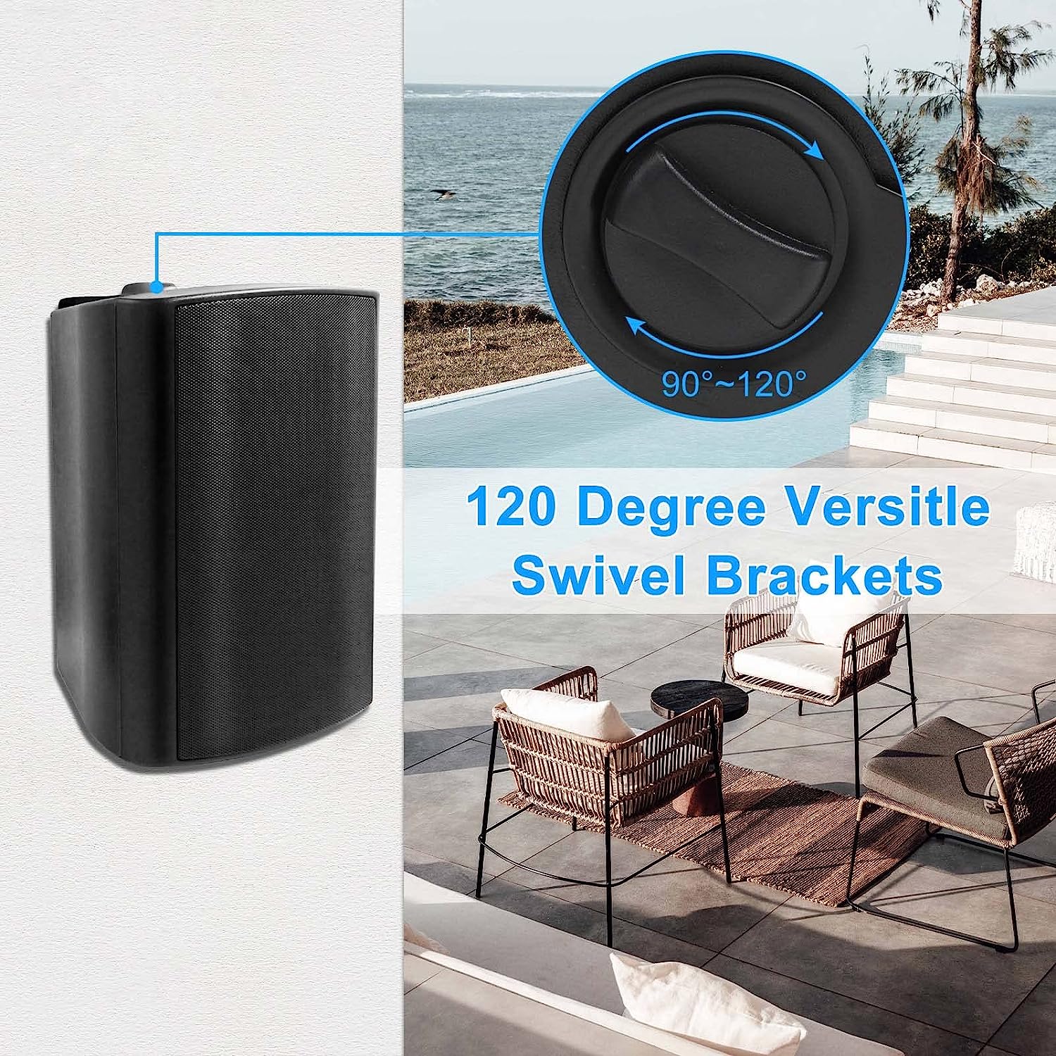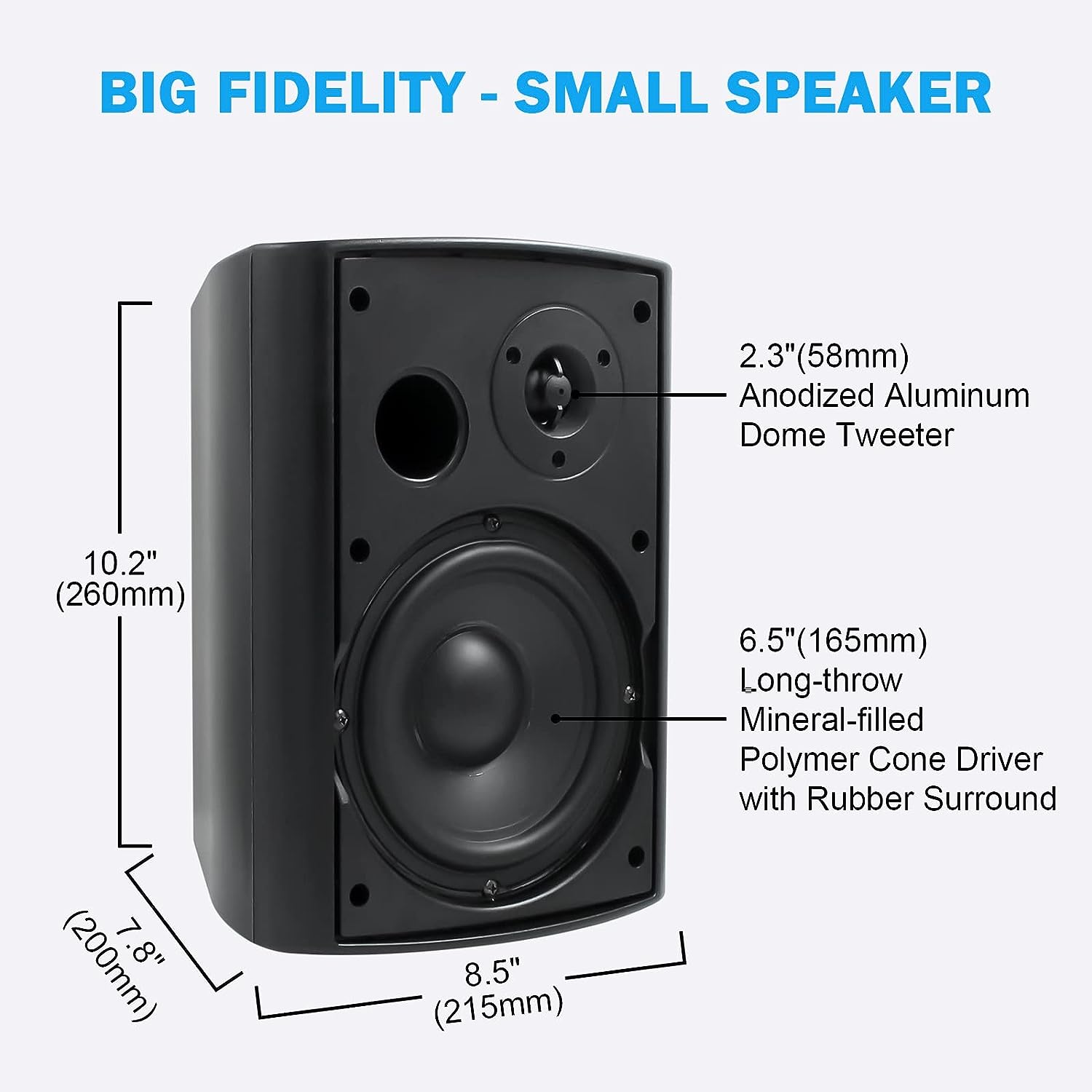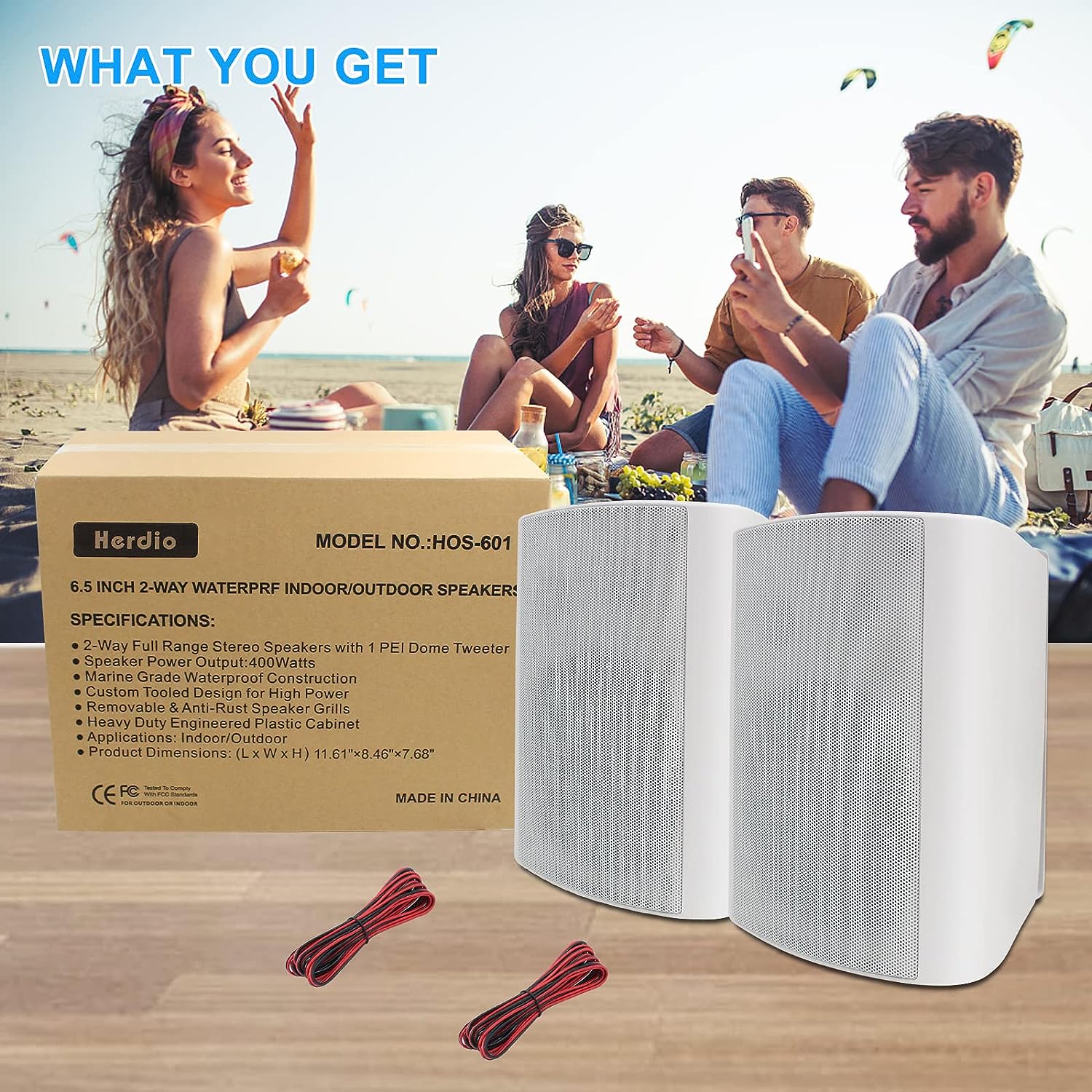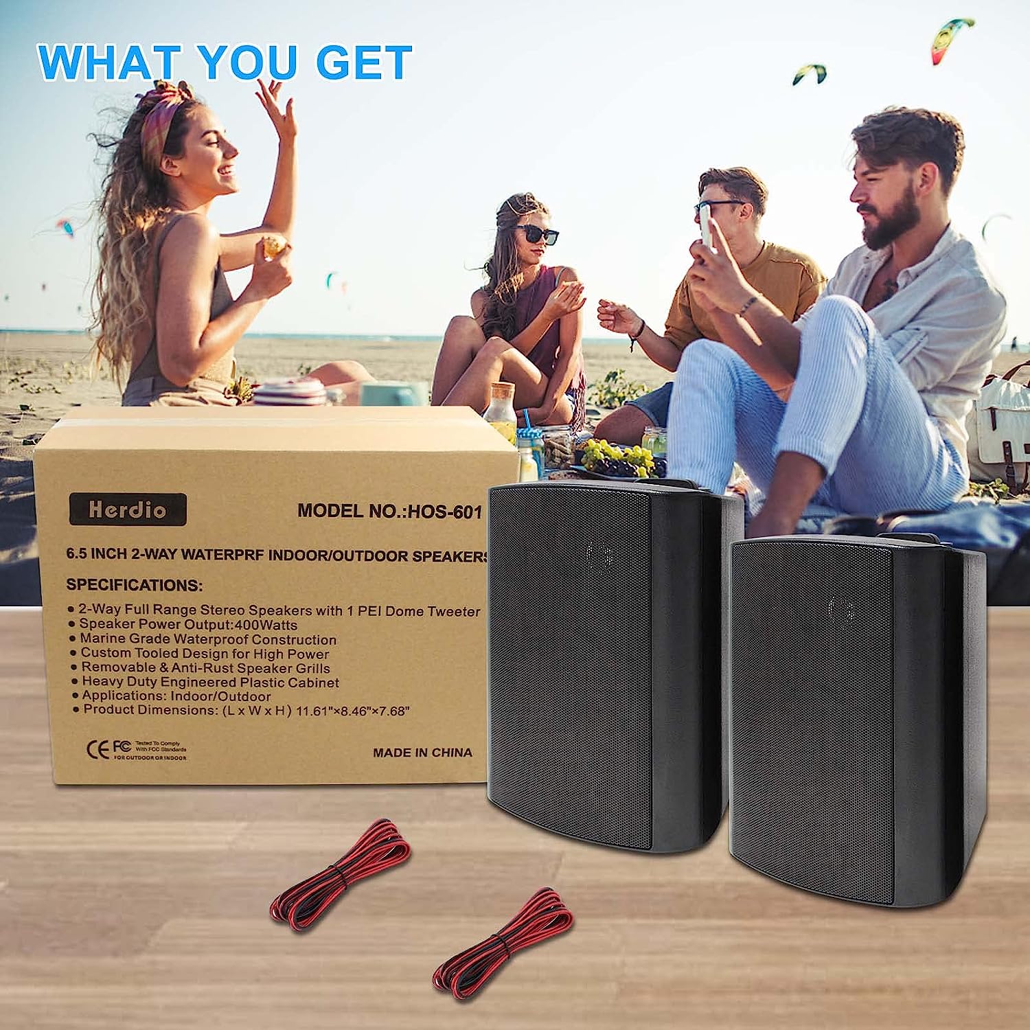 Herdio 6.5 Inches Passive Outdoor Speakers Waterproof Wired 400 Watt with Powerful Bass,Wall Mount Speakers for Patio Garage Covered Deck (Pair,Black)